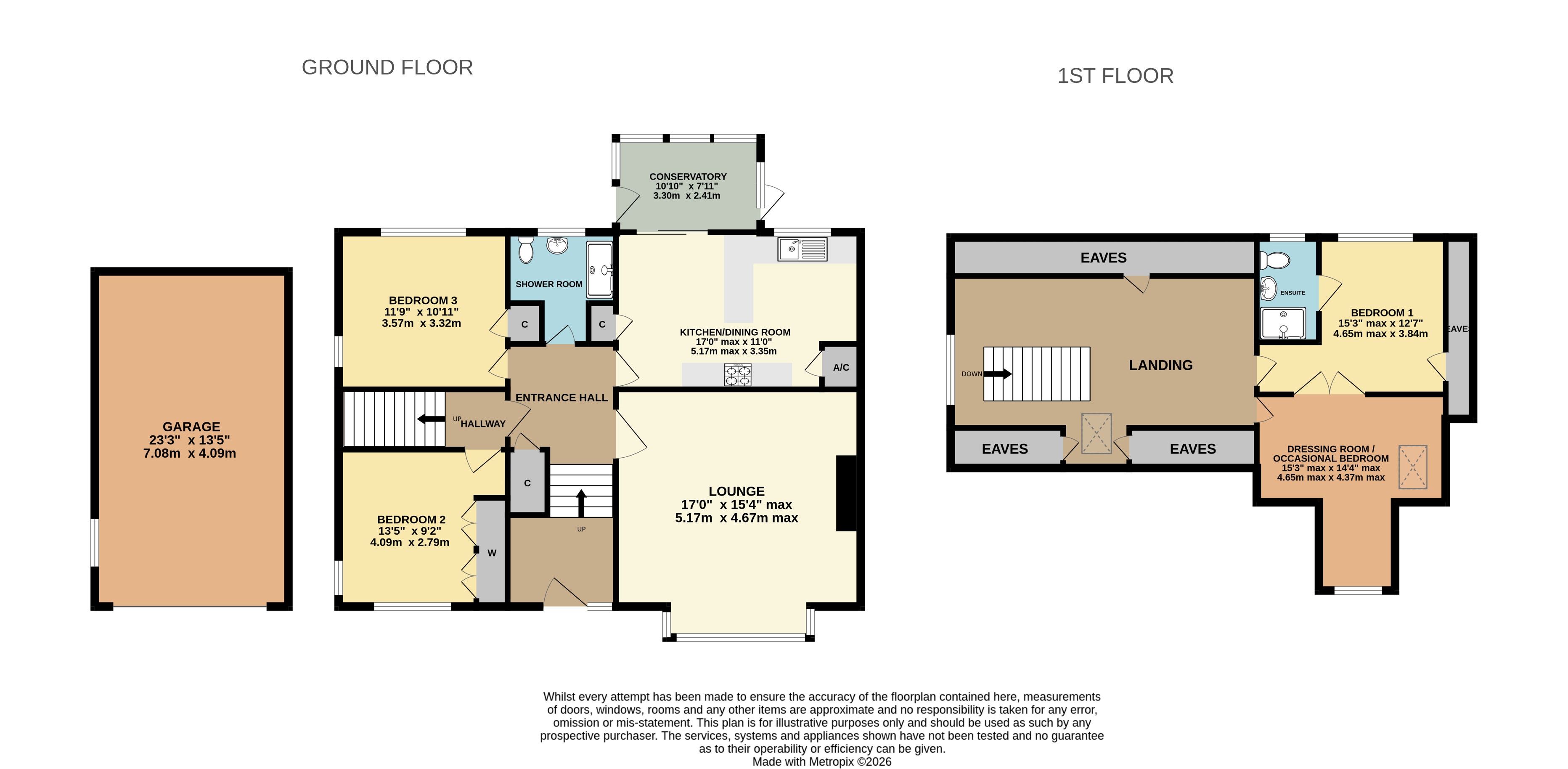 The ground floor offers two well-sized double bedrooms and three-piece suite shower room.