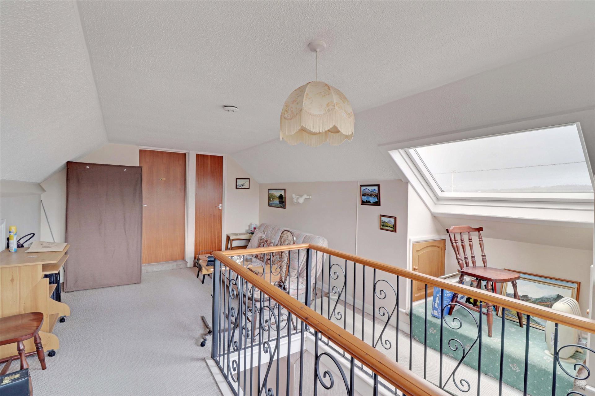 Accessed via steps leading up to the property, the accommodation is well-proportioned throughout. The generous lounge features large windows that perfectly frame the far-reaching views, creating a bright and welcoming living space. To the rear of the property is a kitchen/diner fitted with a range of wall and base units, offering ample storage. Leading from the kitchen/diner is a conservatory, providing an additional reception space and direct access to the private, south-facing rear garden.