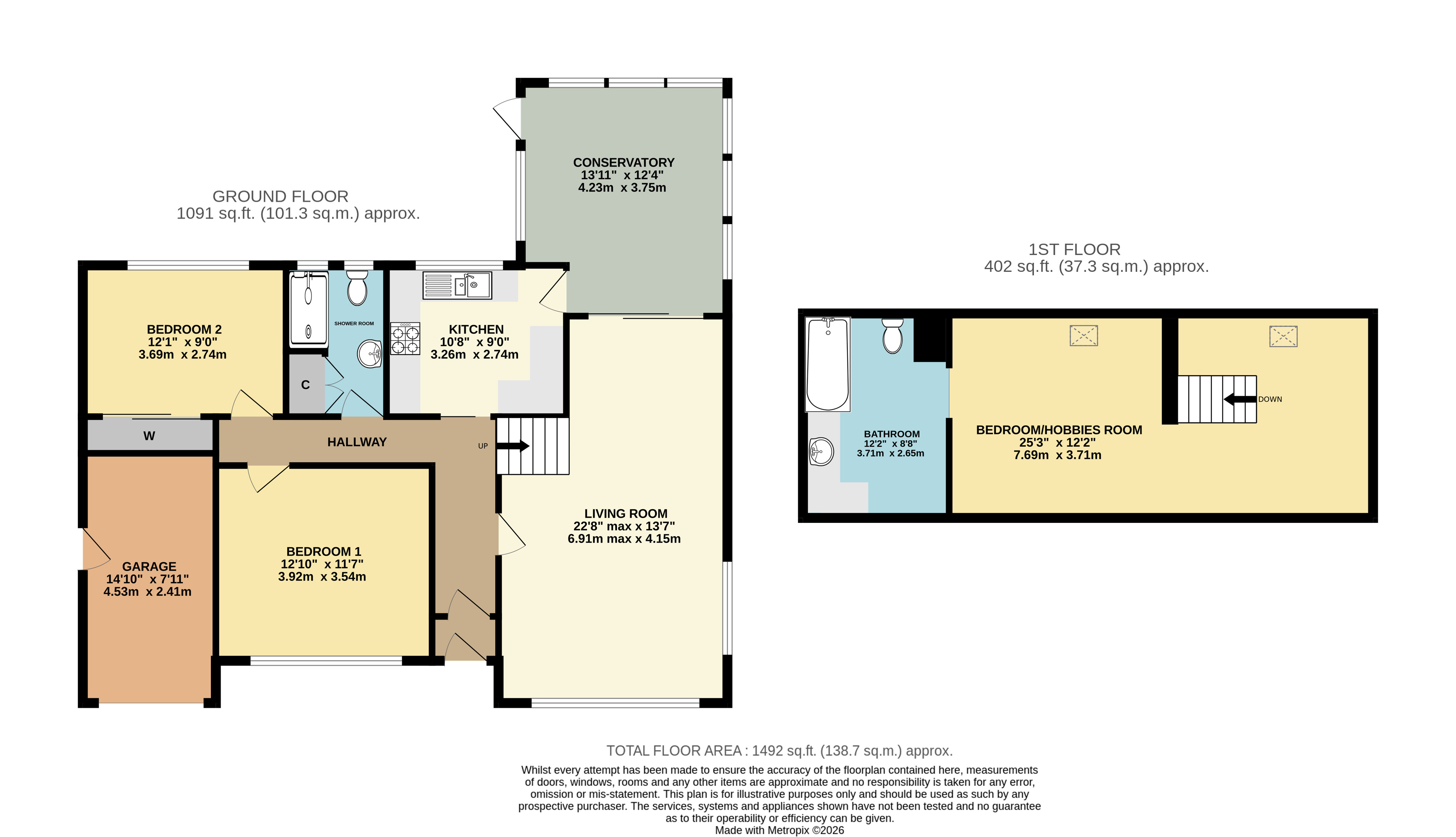 To the first floor, the property boasts an exceptionally large bedroom/hobbies room. This impressive space enjoys an en-suite bathroom fitted with a three-piece suite, adding to the flexibility and appeal of the accommodation.