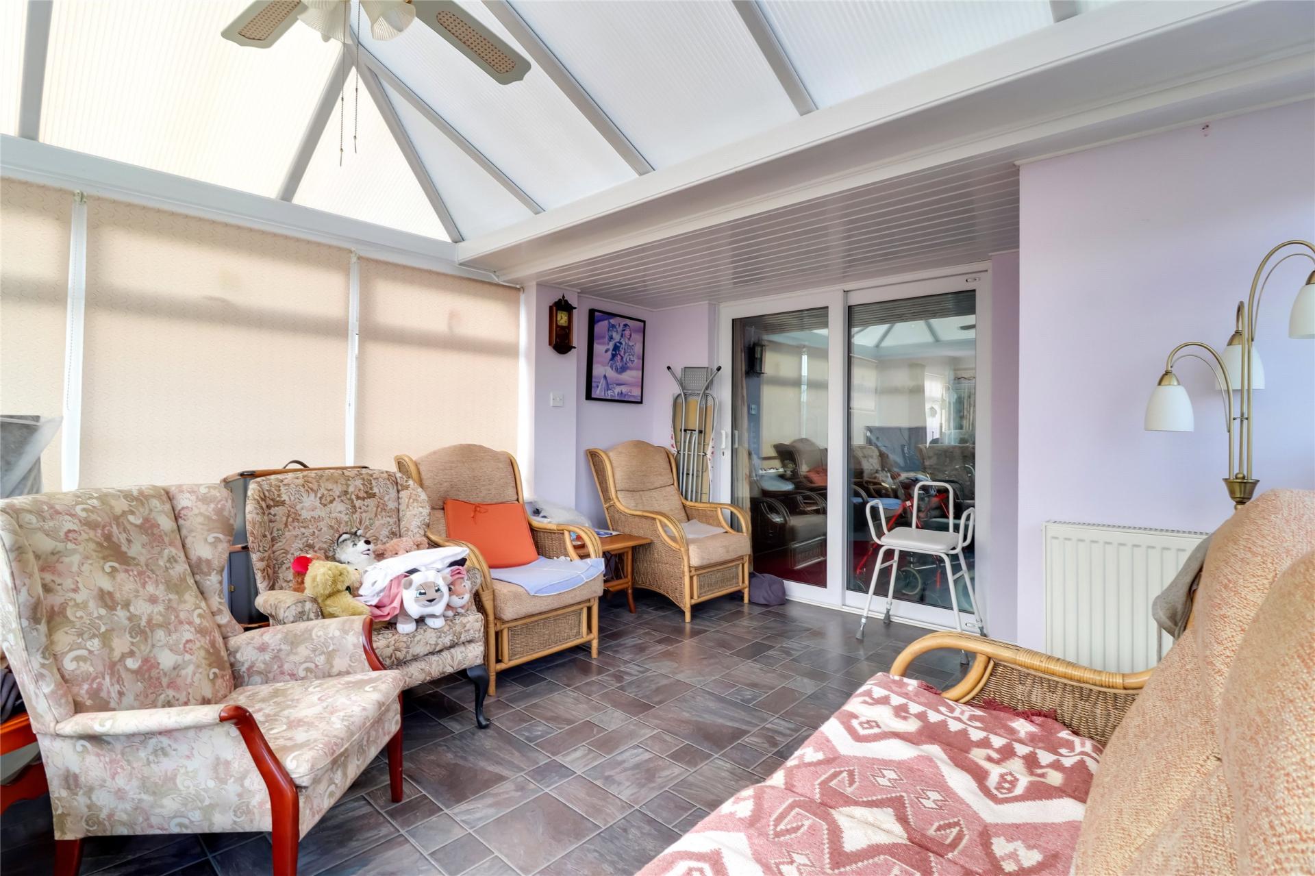 The accommodation begins with an entrance porch, which in turn opens into a welcoming entrance hall providing access to the principal living areas. The heart of the home is the impressive 22'' dual-aspect living room, a bright and spacious space ideal for both everyday living and entertaining. Patio doors open directly into the good-sized conservatory, which enjoys pleasant views over the rear garden and provides an additional reception space.