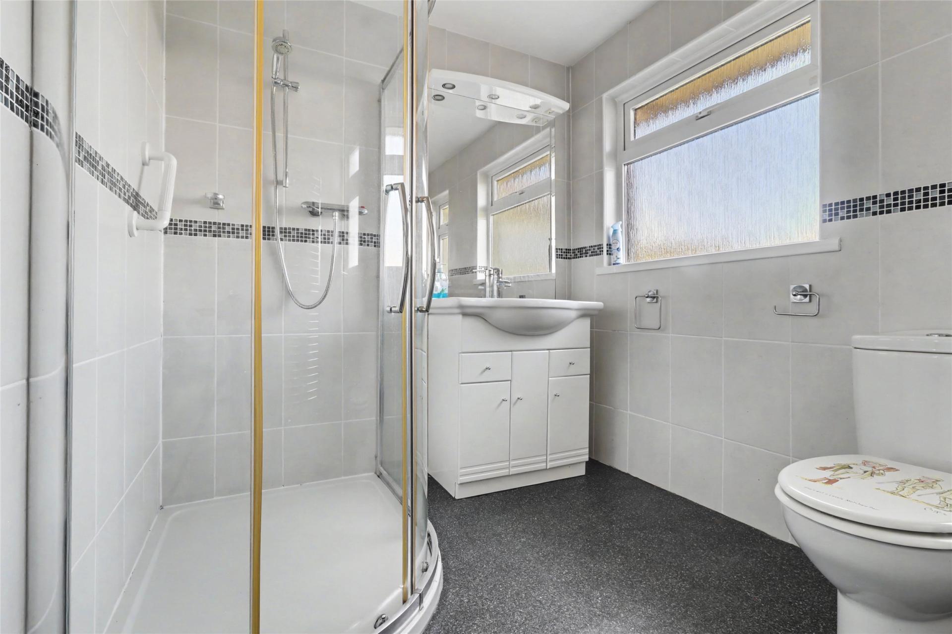 The lounge leads to a further hallway where the sleeping accommodation comprises two generous double bedrooms and a three-piece suite shower room. There is also an additional entrance door within this hallway, providing further practicality.
