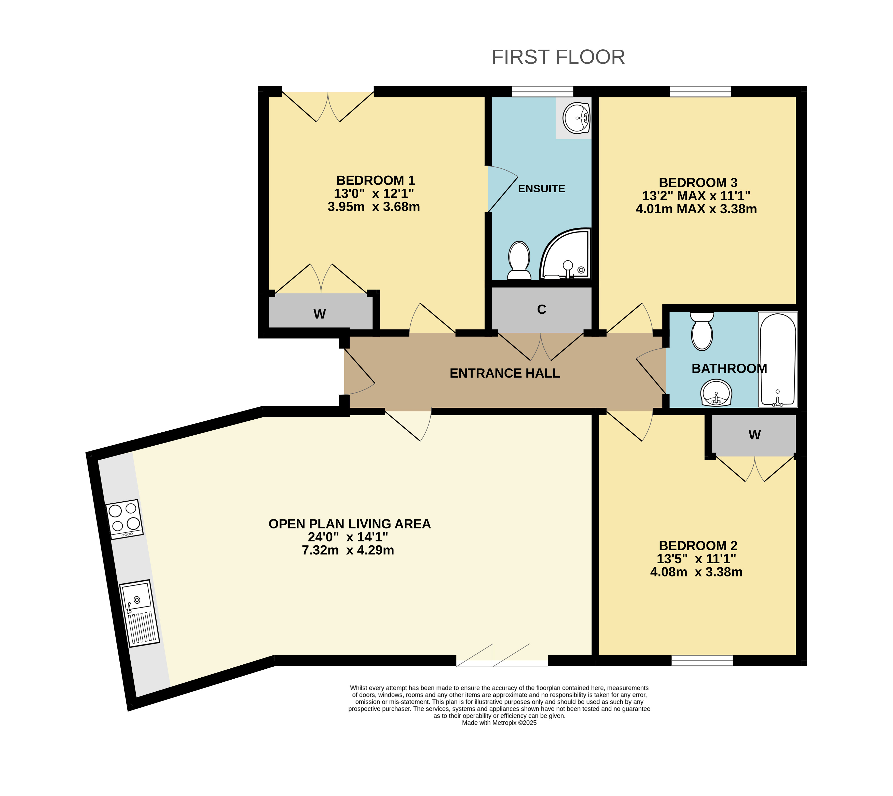Bedroom 3 13'2" max x 11'1" (4.01m max x 3.38m).