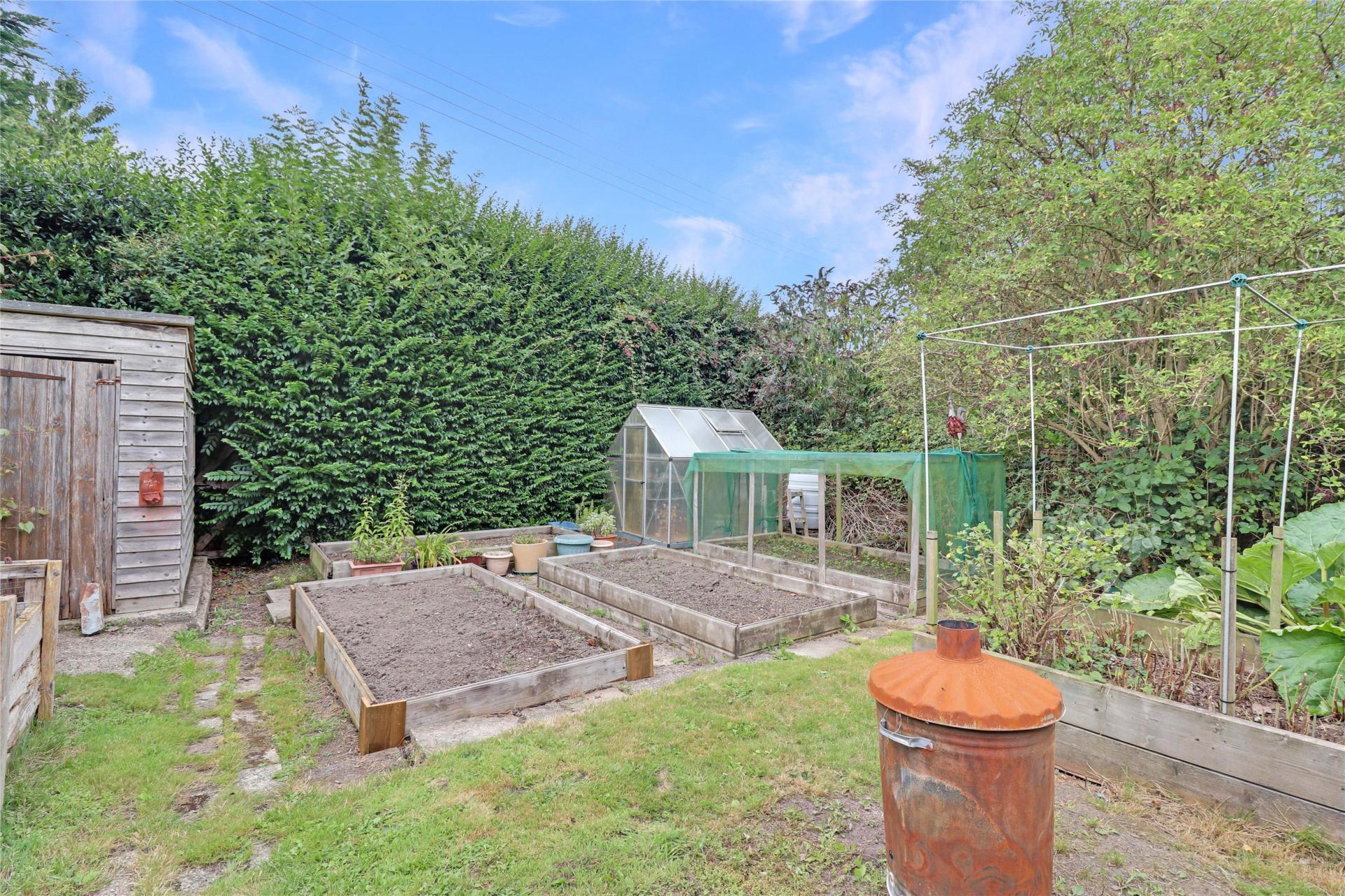 From the kitchen diner, double doors open onto a porch that connects seamlessly to the rear garden. At the upper level of the garden, a paved patio offers an inviting spot for outdoor dining, leading down to an extensive lawn bordered by mature planting. A meandering footpath draws you further into the plot, where you will discover the delightful 'secret garden'. This hidden retreat is home to a productive vegetable patch, a substantial sunroom added in recent years, and a raised deck area that basks in sunlight  a truly idyllic setting for summer gatherings or quiet moments of relaxation.