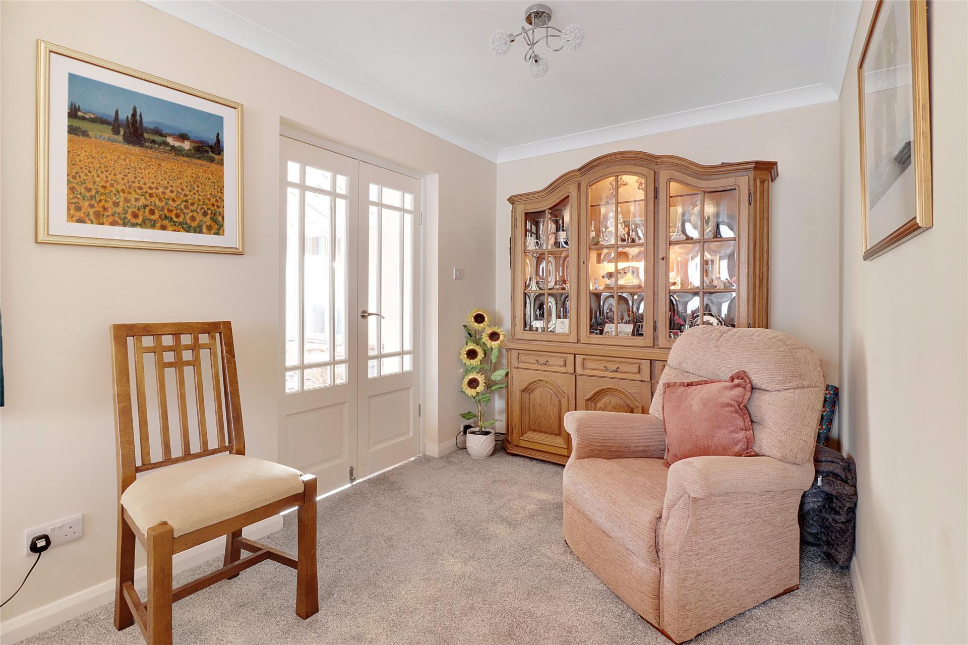 The bungalow comprises three double bedrooms, two of which feature built-in wardrobes, and one with an en-suite shower room with a modern three-piece suite. There is a fourth single bedroom, which could easily serve as a home office, along with a modern fitted family bathroom.