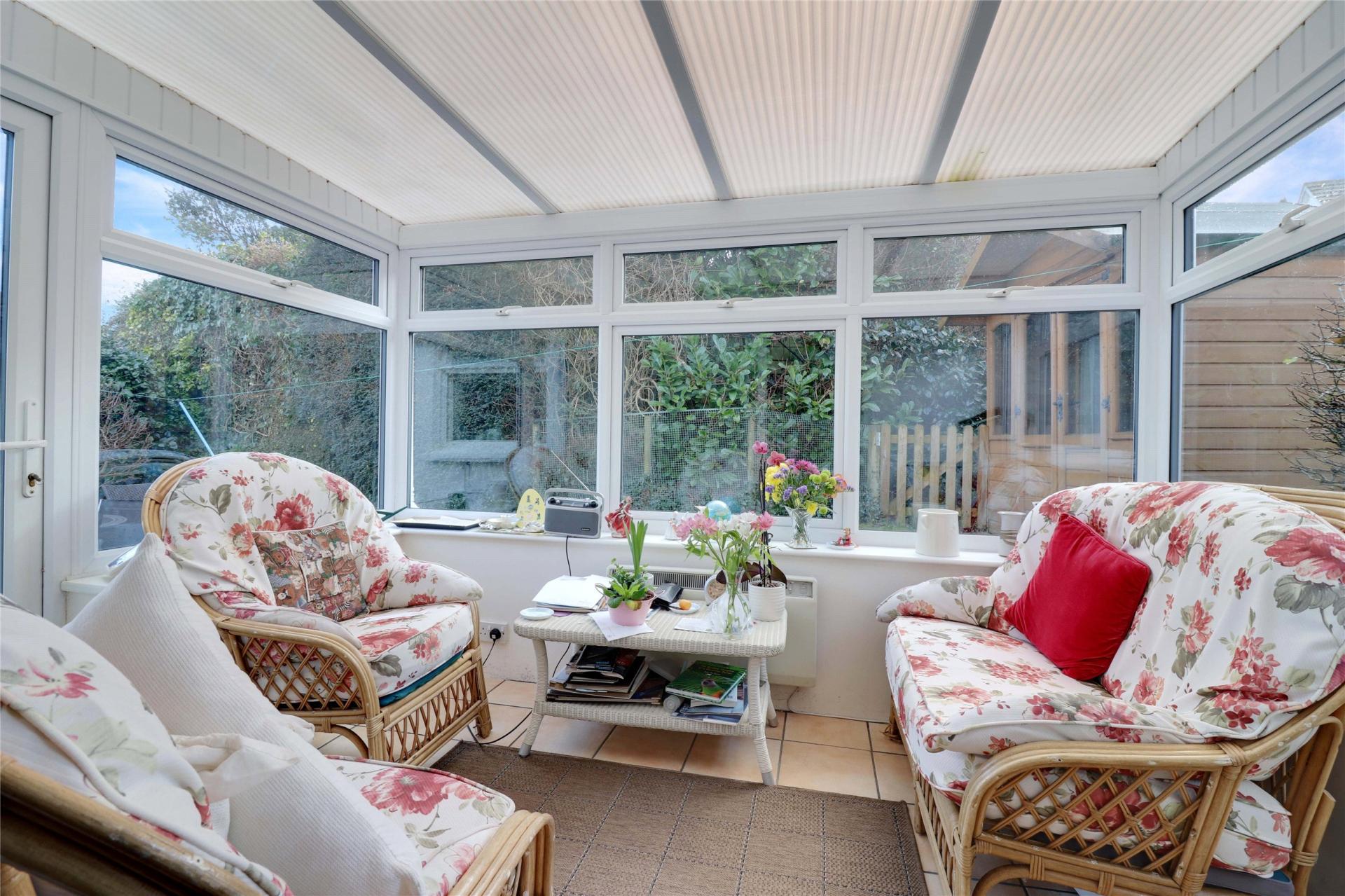 Accessed via steps leading up to the property, the accommodation is well-proportioned throughout. The generous lounge features large windows that perfectly frame the far-reaching views, creating a bright and welcoming living space. To the rear of the property is a kitchen/diner fitted with a range of wall and base units, offering ample storage. Leading from the kitchen/diner is a conservatory, providing an additional reception space and direct access to the private, south-facing rear garden.