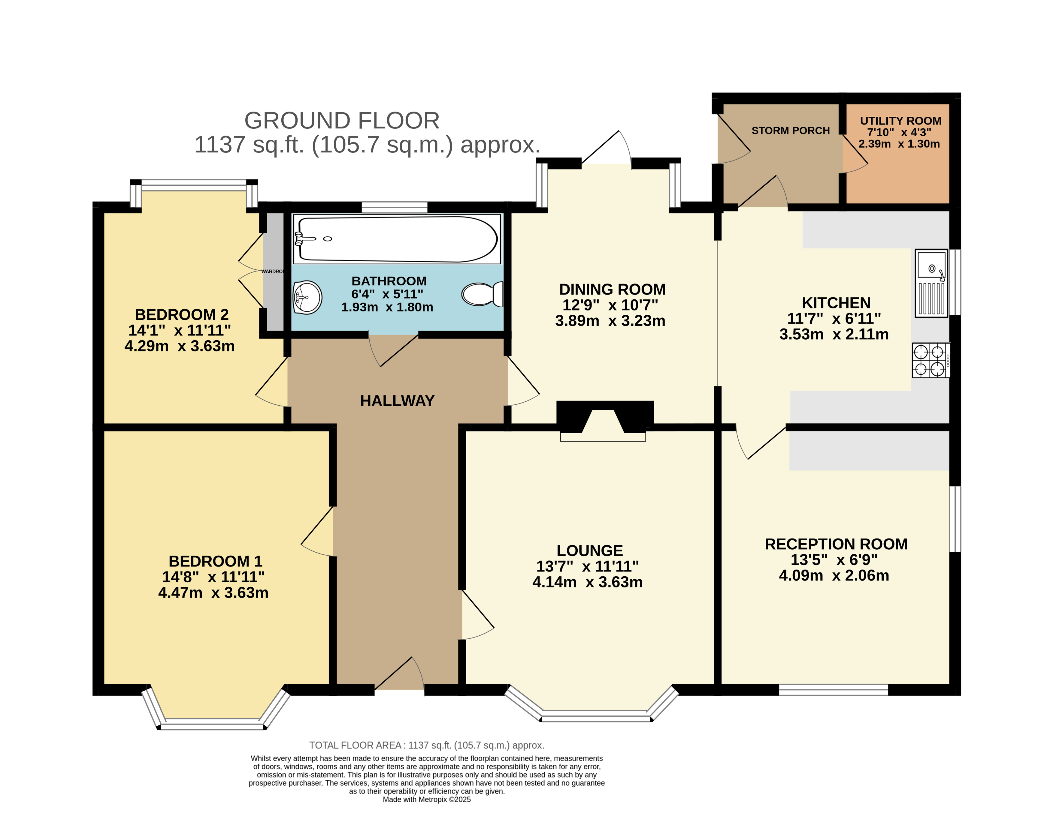 Lounge 13'7" x 11'11" (4.14m x 3.63m).