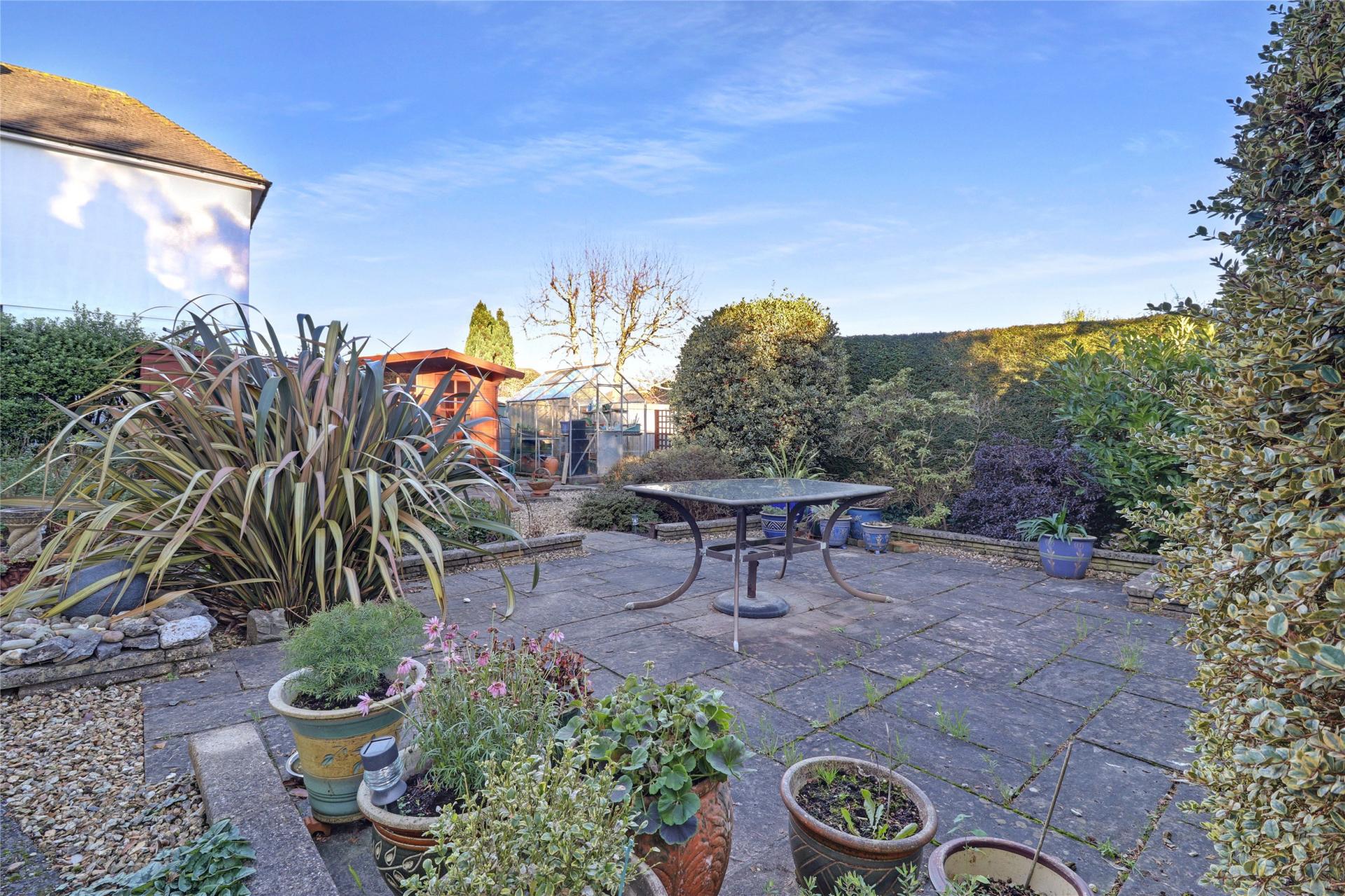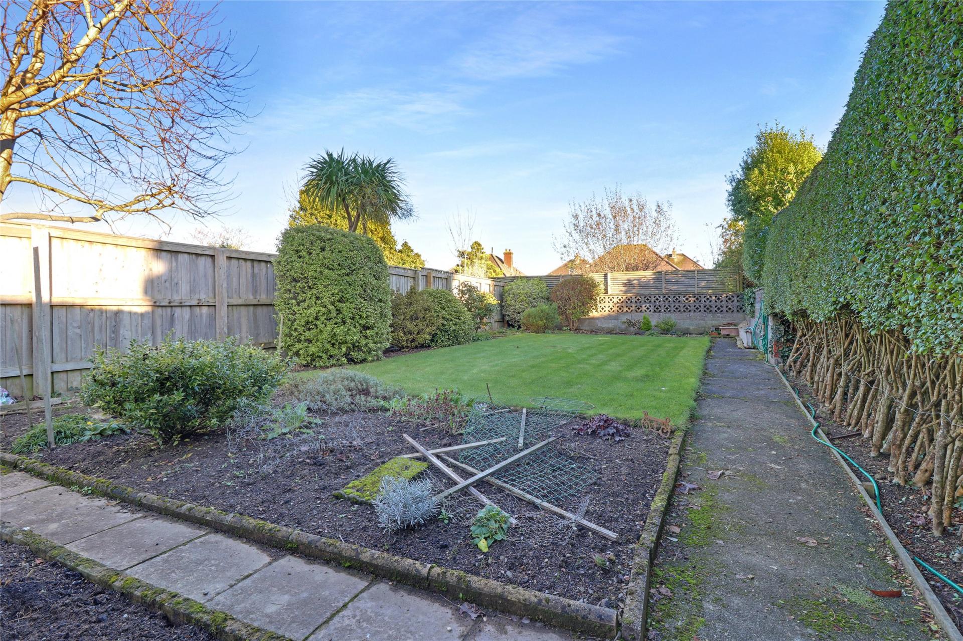 Outside, the property boasts a beautifully maintained and sizeable rear garden, offering excellent privacy. It features lawned areas, a vegetable plot, established planting and a selection of patio spaces ideal for outdoor dining or relaxation. There is side access from both sides of the bungalow, while the front of the property benefits from driveway parking.