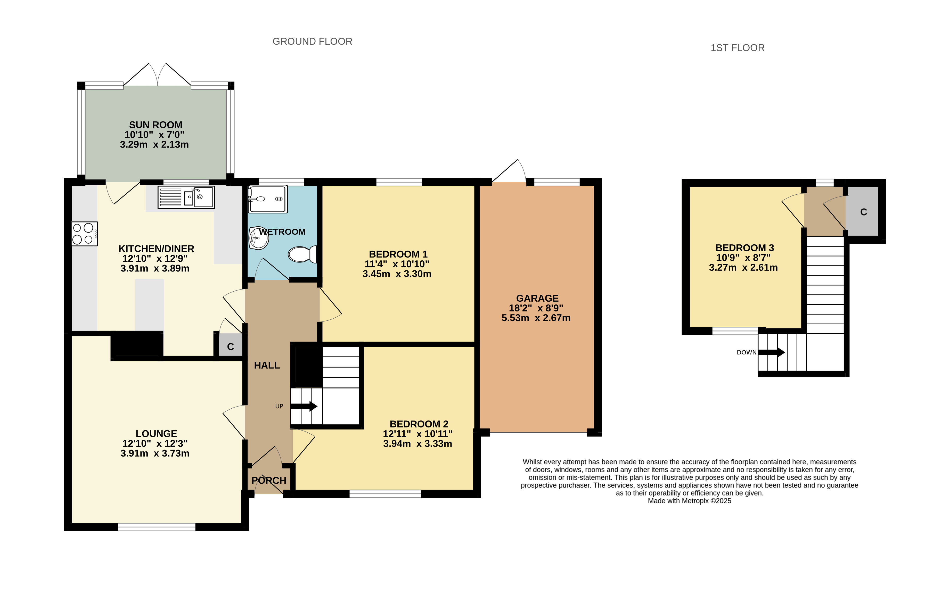Sun Room 10'10" x 7' (3.3m x 2.13m).