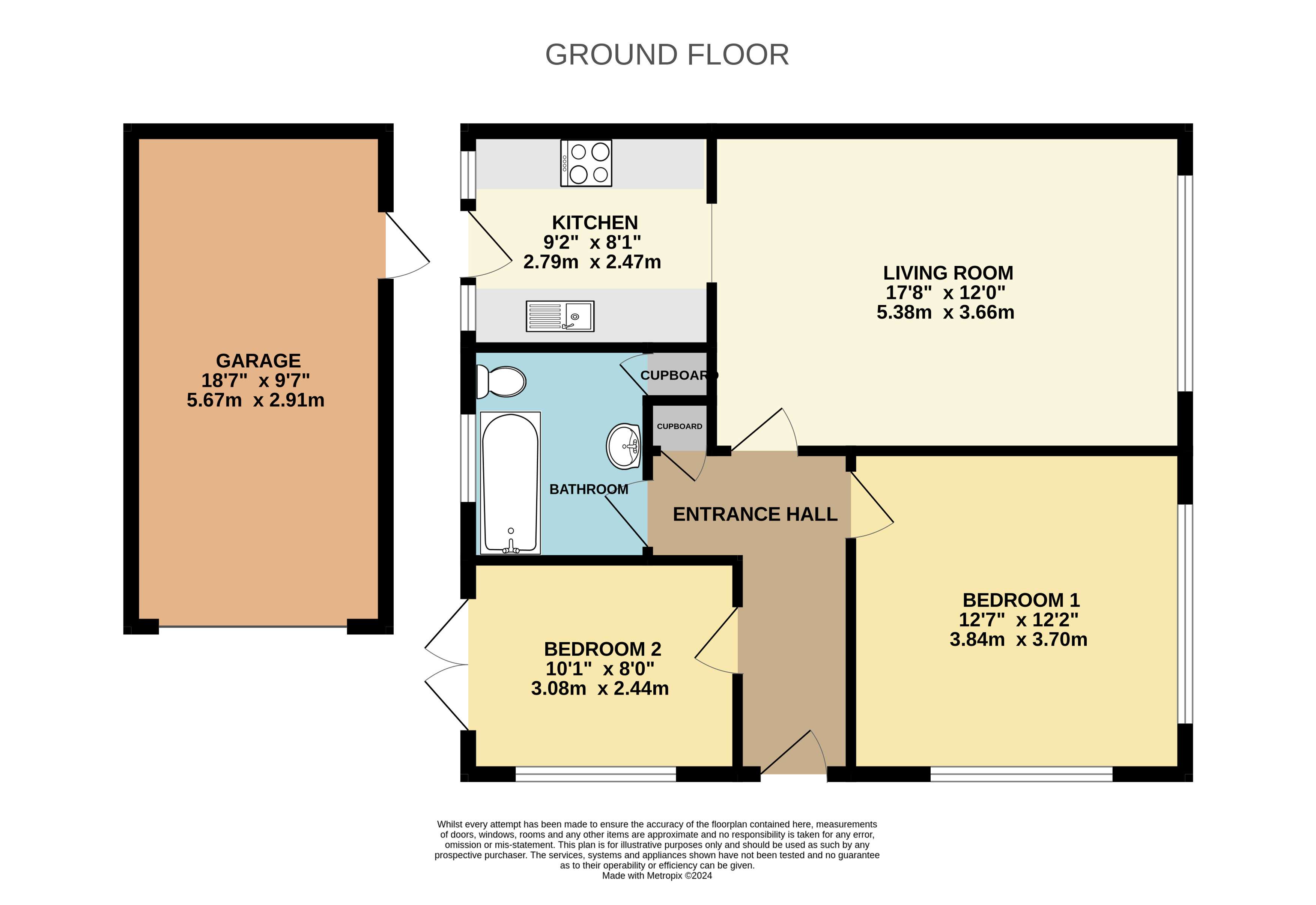 Single Garage 18'7" x 9'7" (5.66m x 2.92m).