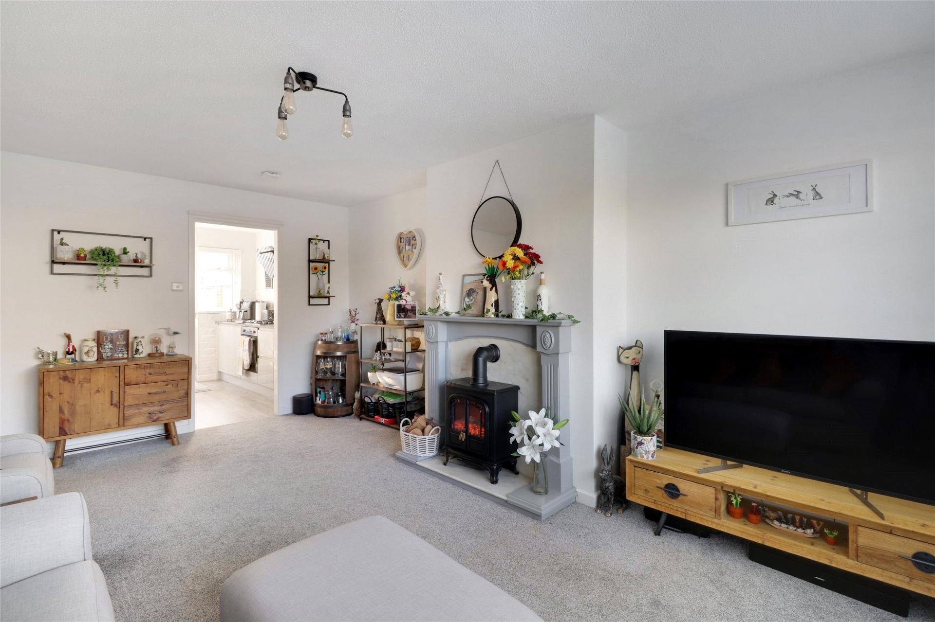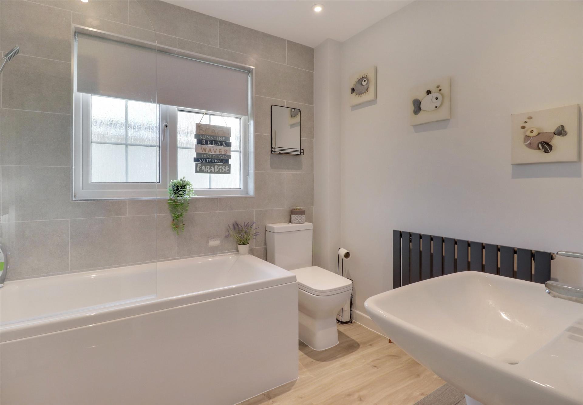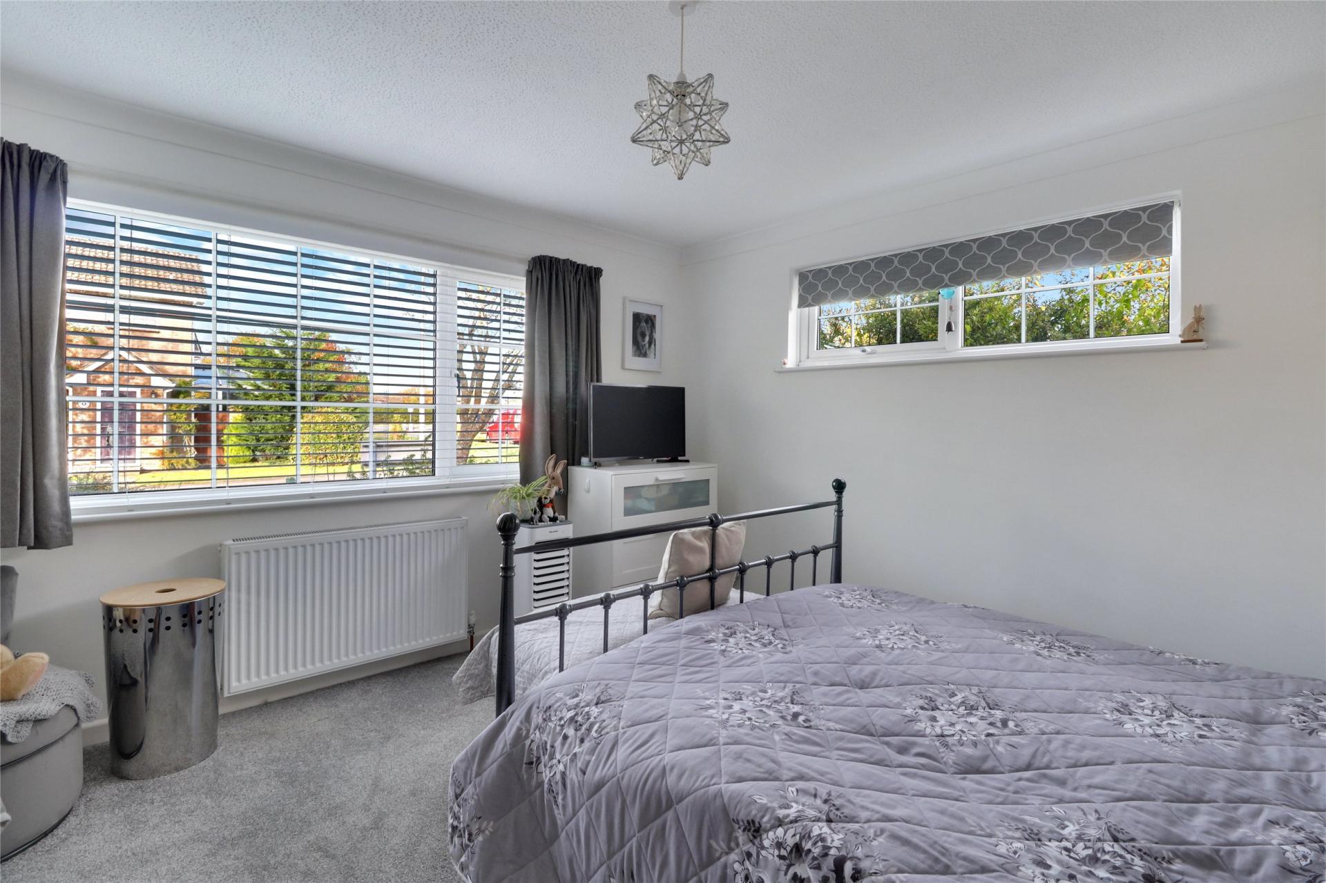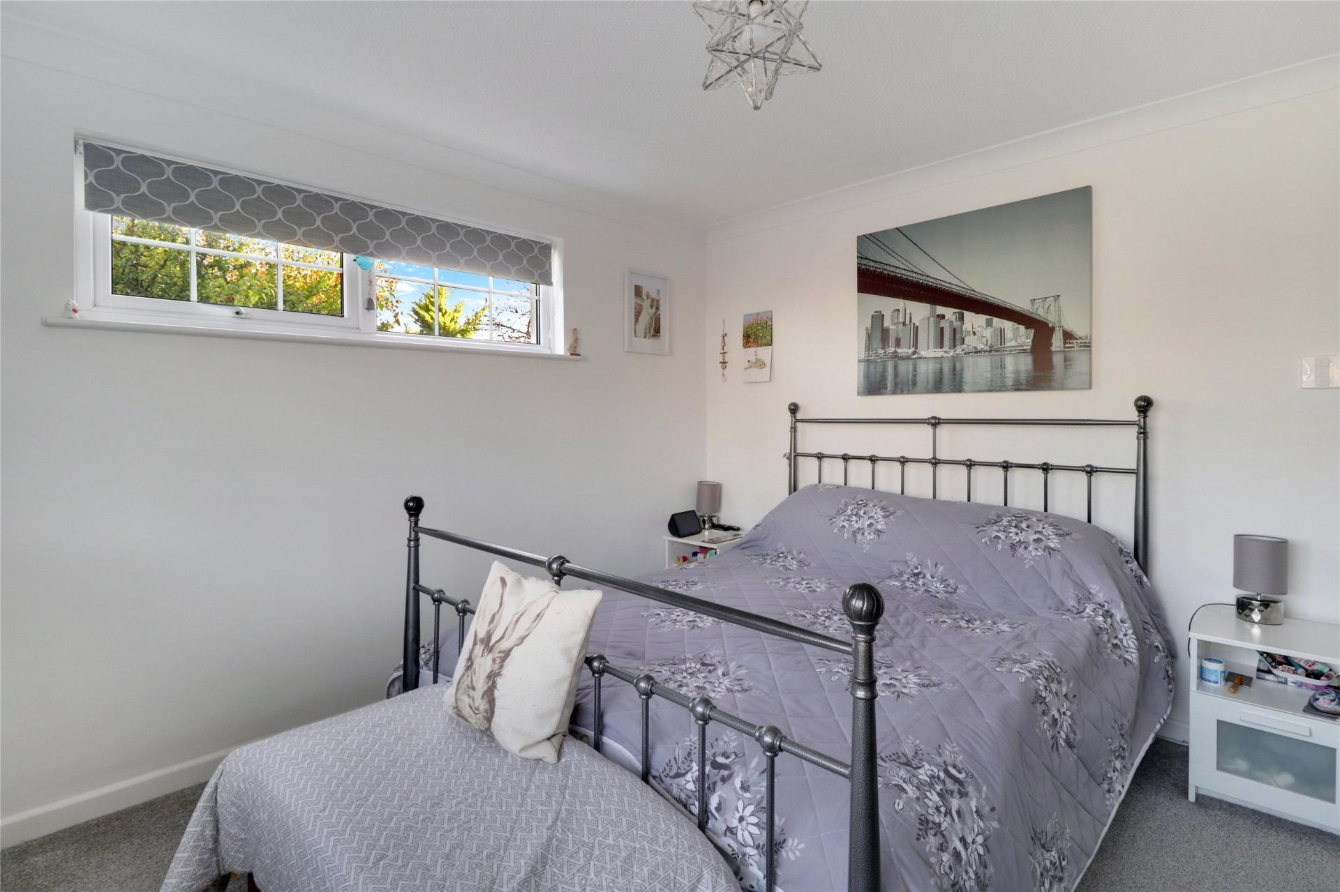 The master bedroom offers a dual-aspect design that enhances the sense of space and light and is of a great size. The second bedroom, with its patio doors that open directly onto the rear garden, adds a unique element to the home; it could easily function as an office or dining room, providing flexible options for the layout. The bathroom has also been updated to a high standard, featuring a fresh three-piece white suite and a useful storage cupboard, adding convenience.