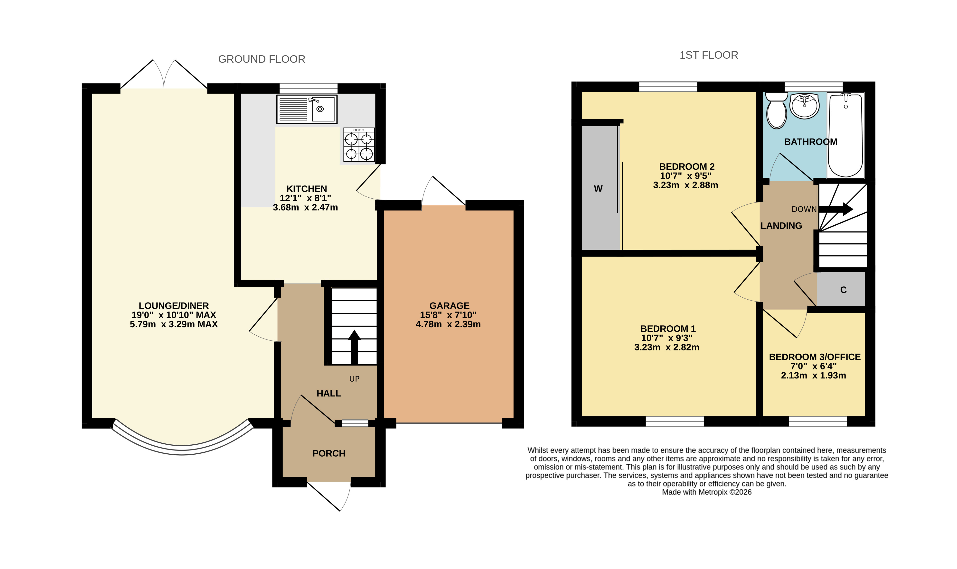 Upstairs, the property features two generously sized double bedrooms and a third smaller bedroom, perfect as a bedroom 3 or office, along with a family bathroom fitted with a modern three-piece suite.