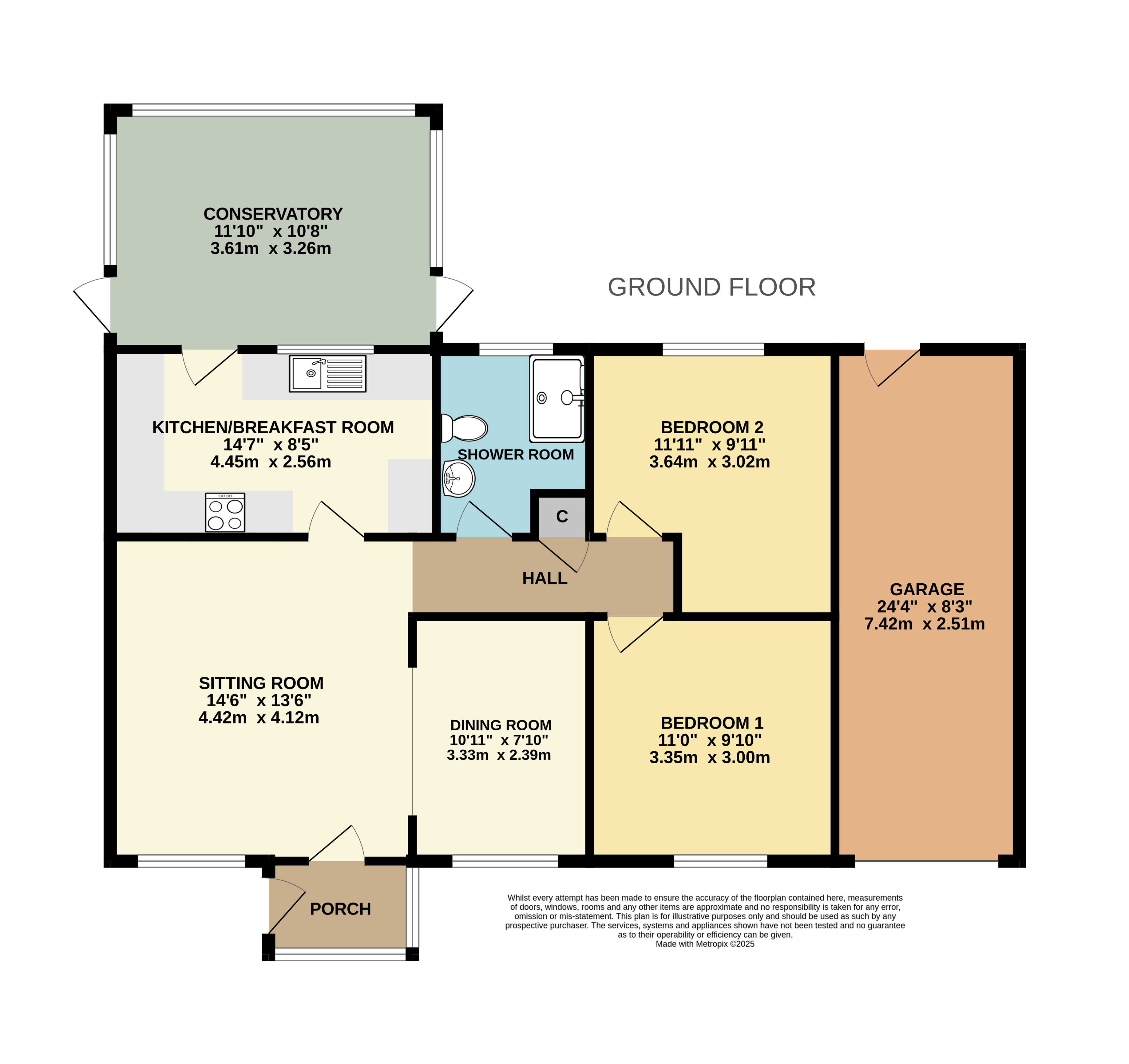 Garage 24'4" x 8'3" (7.42m x 2.51m).
