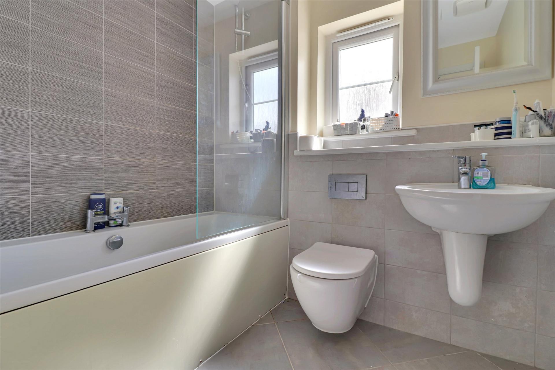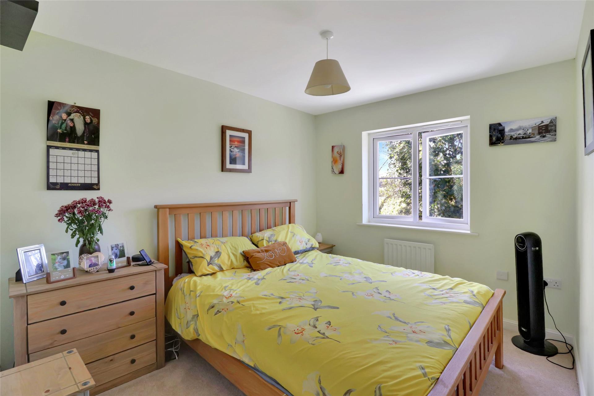 Upstairs, the generous main bedroom features a double-width fitted wardrobe, a large front-facing window that floods the room with natural light, and a modern en-suite shower room. The second bedroom is a spacious double with far-reaching views across open fields, while the third bedroom offers a good-sized single room or home office, also enjoying lovely open views. A stylish three-piece suite bathroom completes the accommodation.
