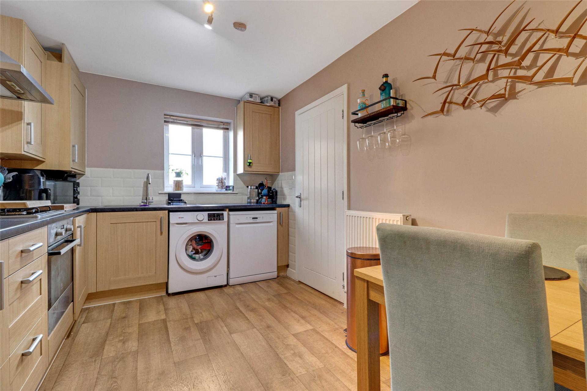 The kitchen/dining room is positioned on your right as you enter the home, possessing an array of matching cupboards and drawers and a stainless steel sink inset into worktop surface. There is plumbing for a washing machine and dishwasher, as well as space for both a fridge/freezer and dining table and chairs. Integrated appliances include a four-ring gas hob with an electric oven below and a stainless steel extractor over.