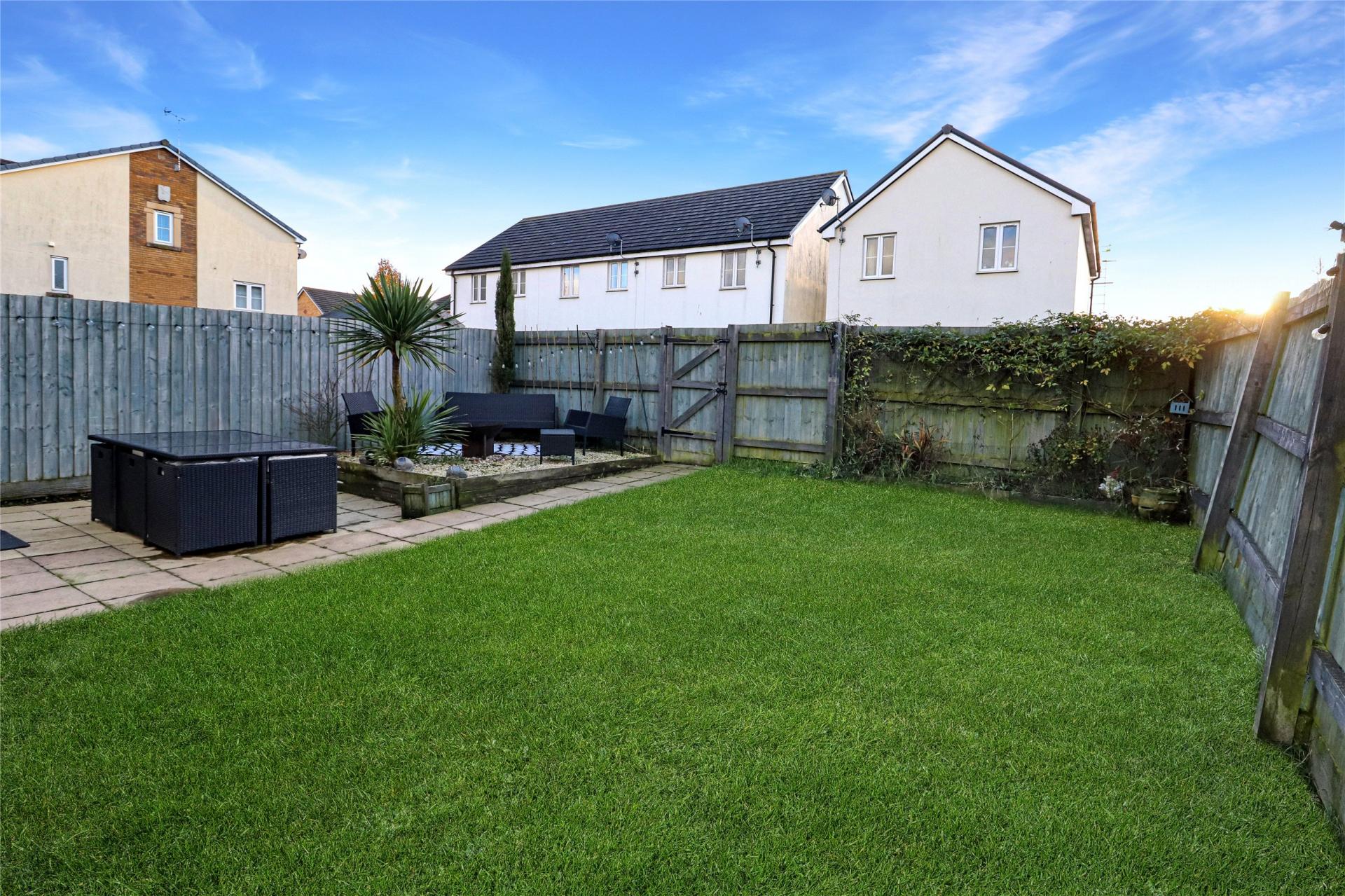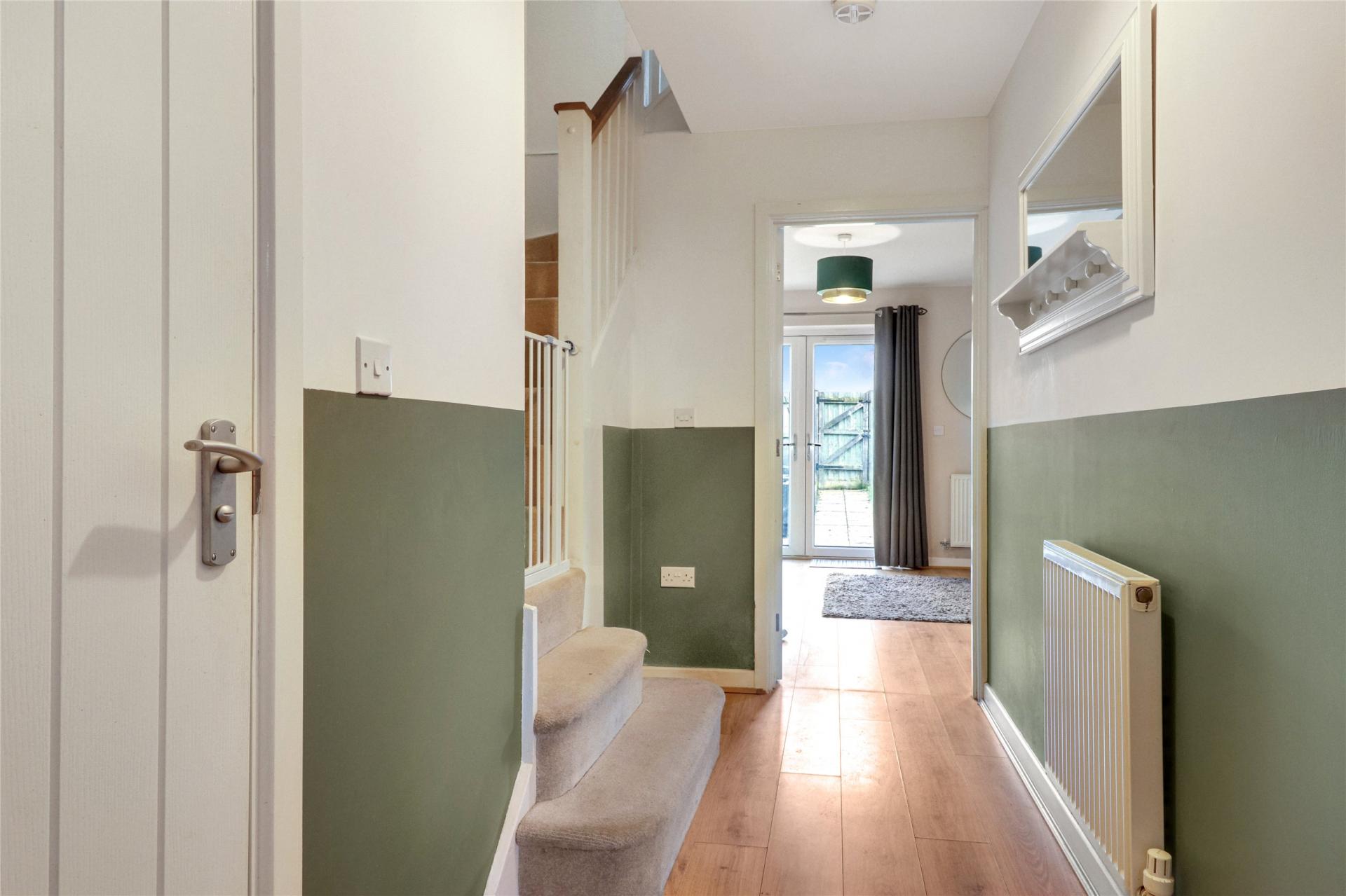 To the front of the house are two allocated off road parking spaces, whilst the rear garden consists of a paved patio seating area, lawned gardens, an area of stone chippings and a useful pedestrian side gate.