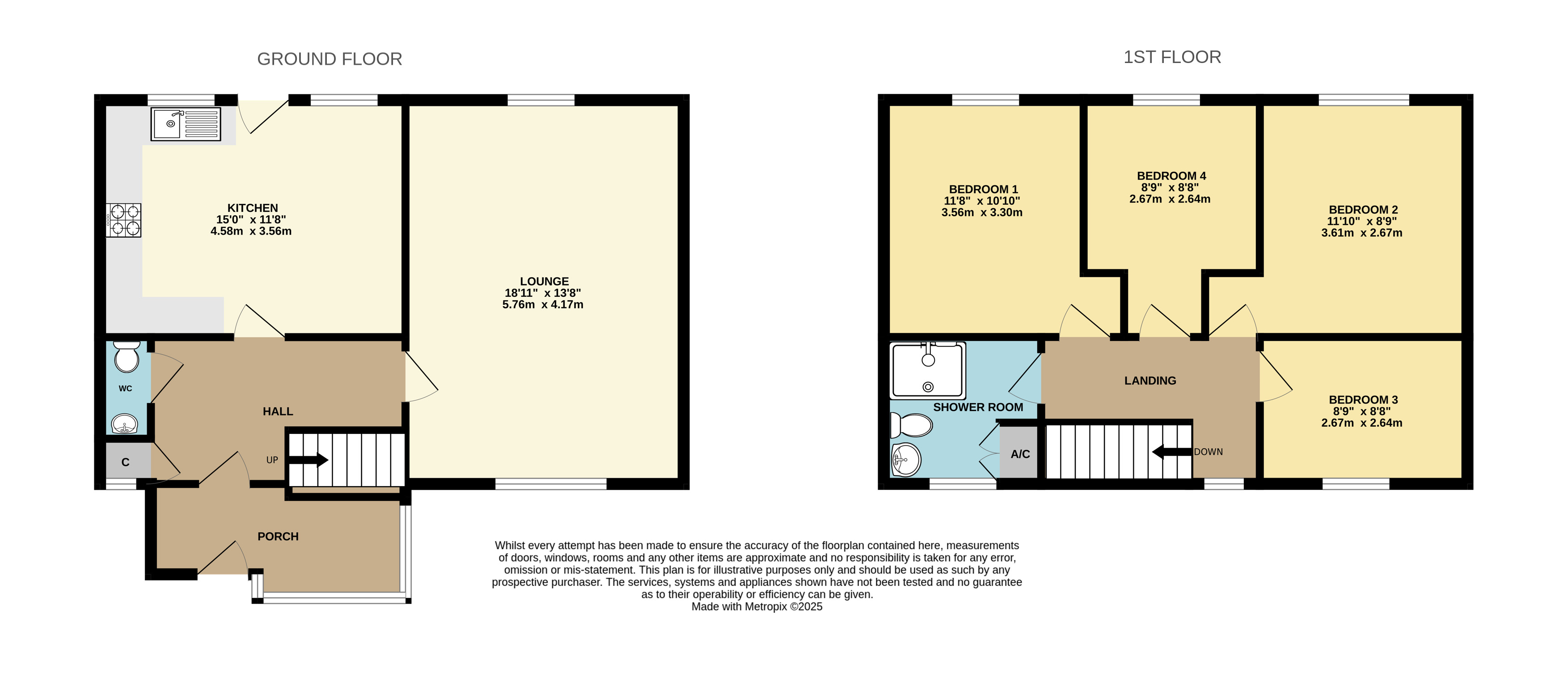 Bedroom 1 11'8" x 10'10" (3.56m x 3.3m).