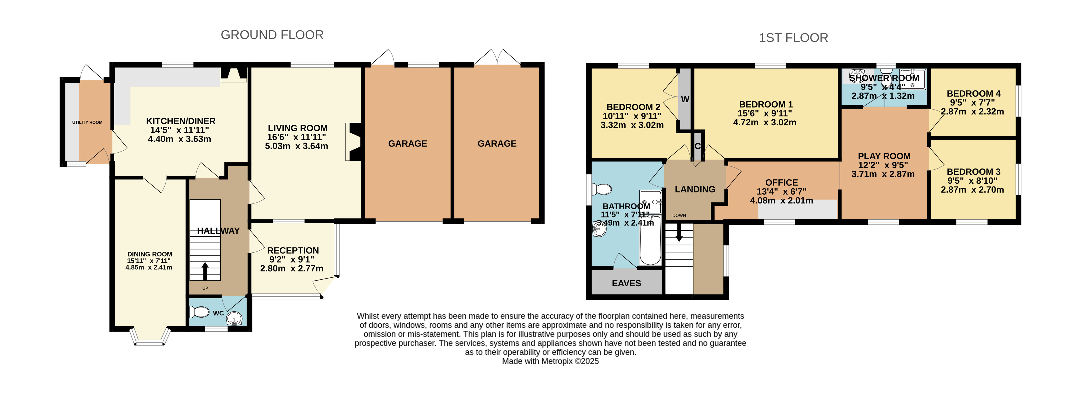 There are two single garages providing excellent potential for secure car storage, a workshop, or even further utility space. One of the garages also benefits from double doors opening directly into the rear garden, ensuring easy access for transporting larger items or garden equipment from front to back.
