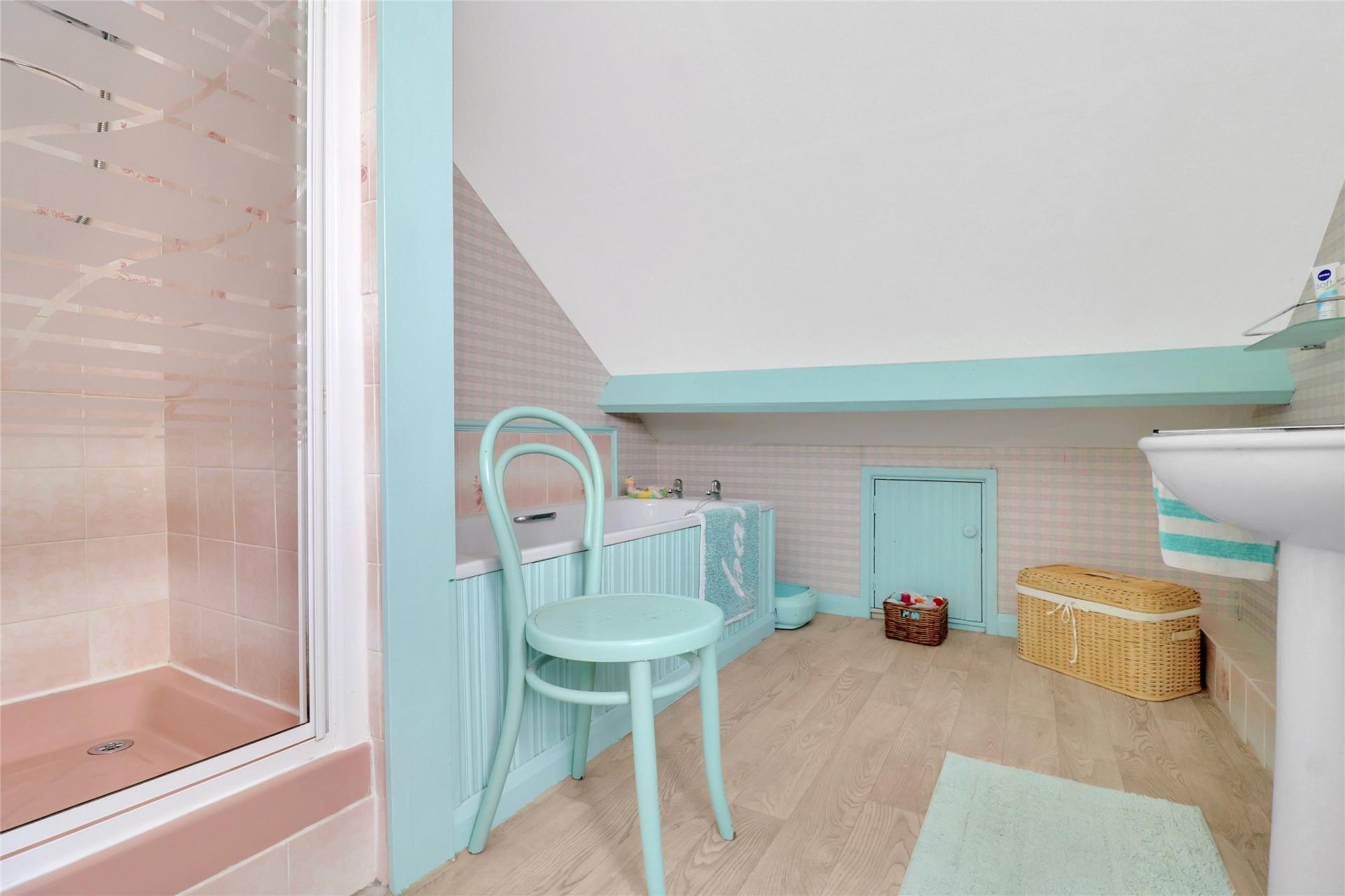 Ascending to the first floor, the main family bathroom comprises a four-piece suite. An obscure glazed window to the side allows in natural light while maintaining privacy.
