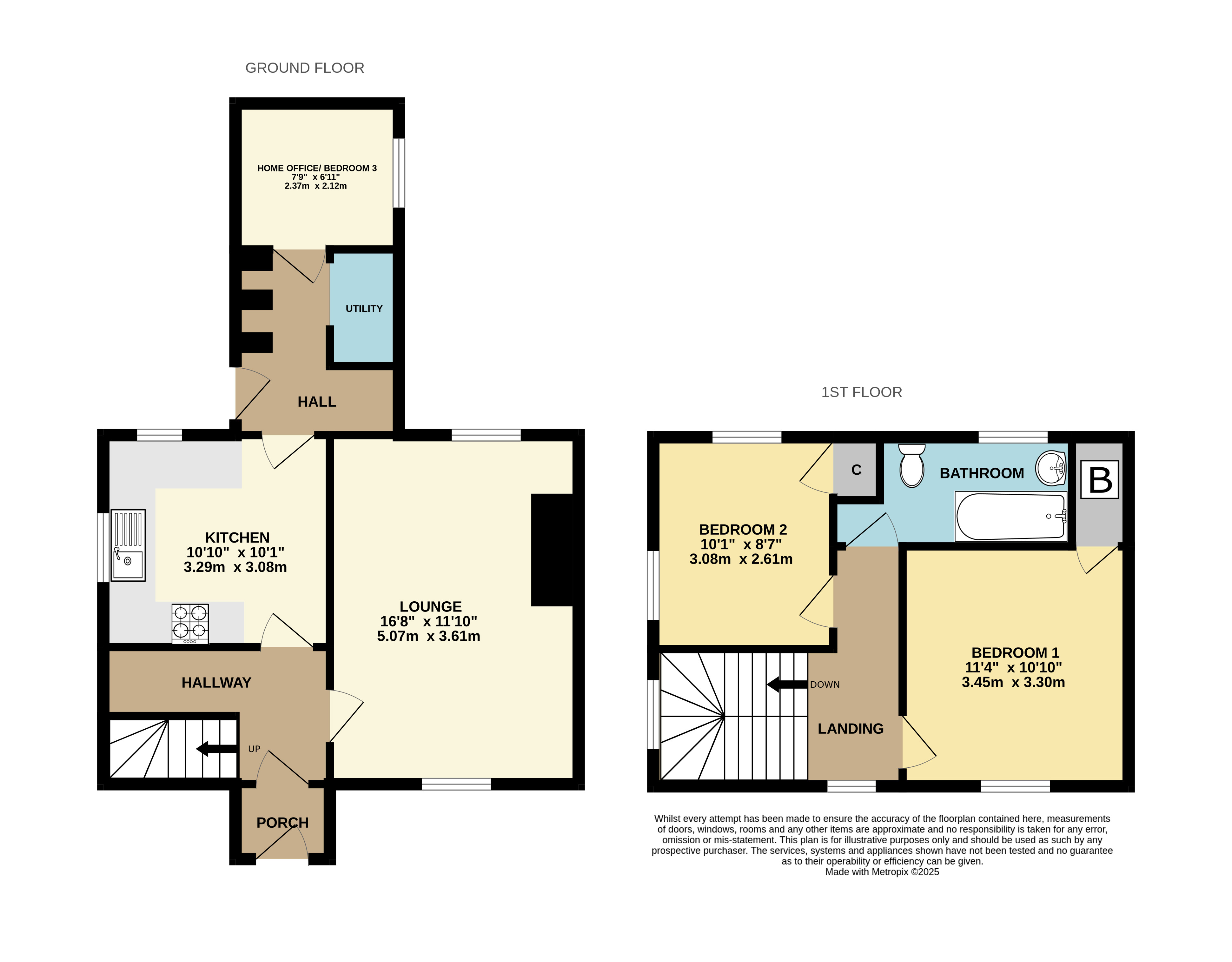 The first floor comprises two generously sized double bedrooms, enjoying pleasant outlooks. The family bathroom provides a clean, functional space that complements the rest of the home.