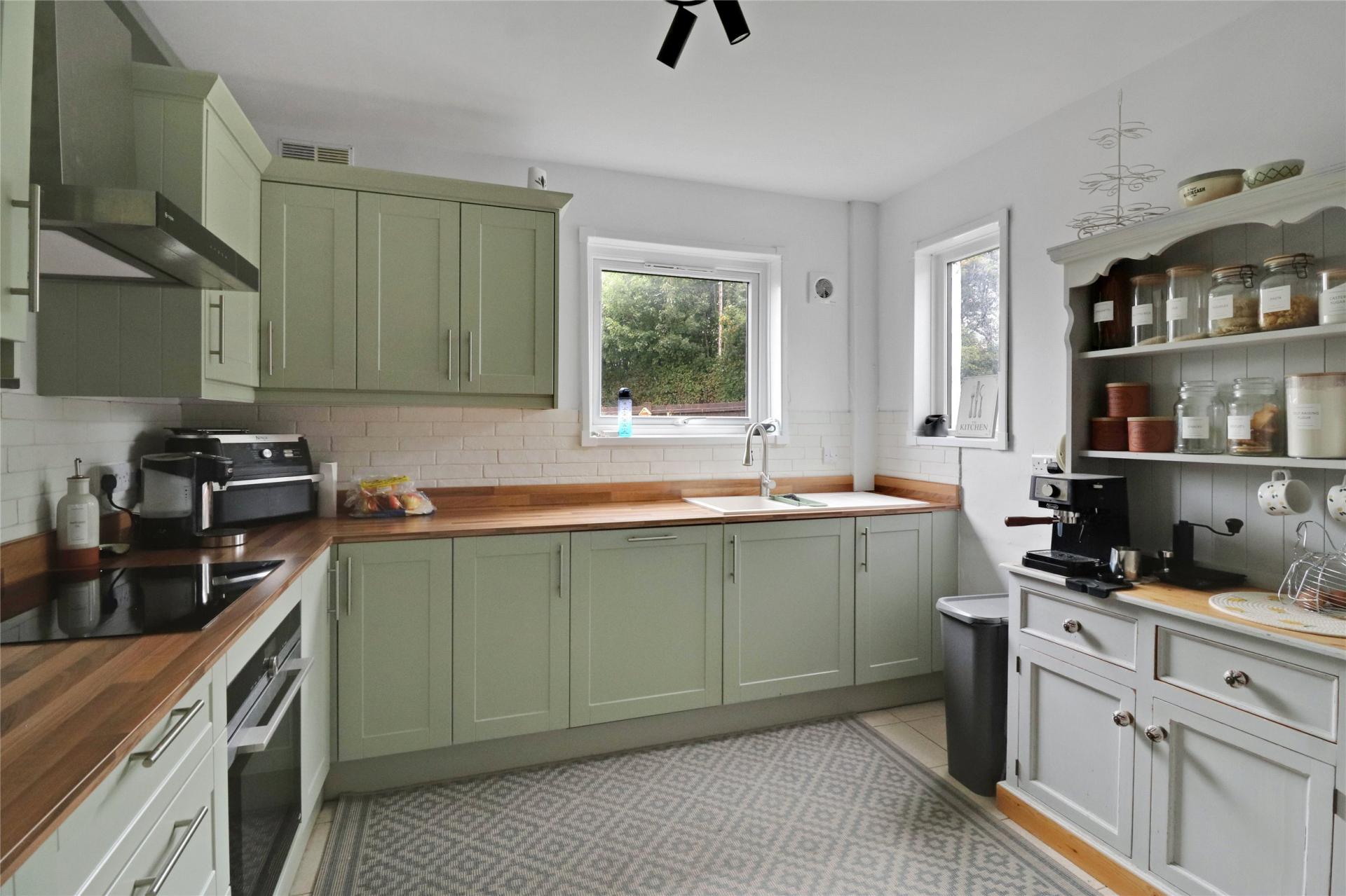 Upon entering the property, you are welcomed into a bright and inviting lounge with dual-aspect windows that flood the room with natural light. Having been recently redecorated, the standout feature of this room is the recently installed log burner, creating a cosy focal point. The lounge also boasts enough space to have a dining room table. The new kitchen features integrated appliances including a built-in oven, hob and dishwasher. Off the kitchen is an inner hall with space for a fridge and further white goods, and beyond this is a home office but this could also be used as a third bedroom.