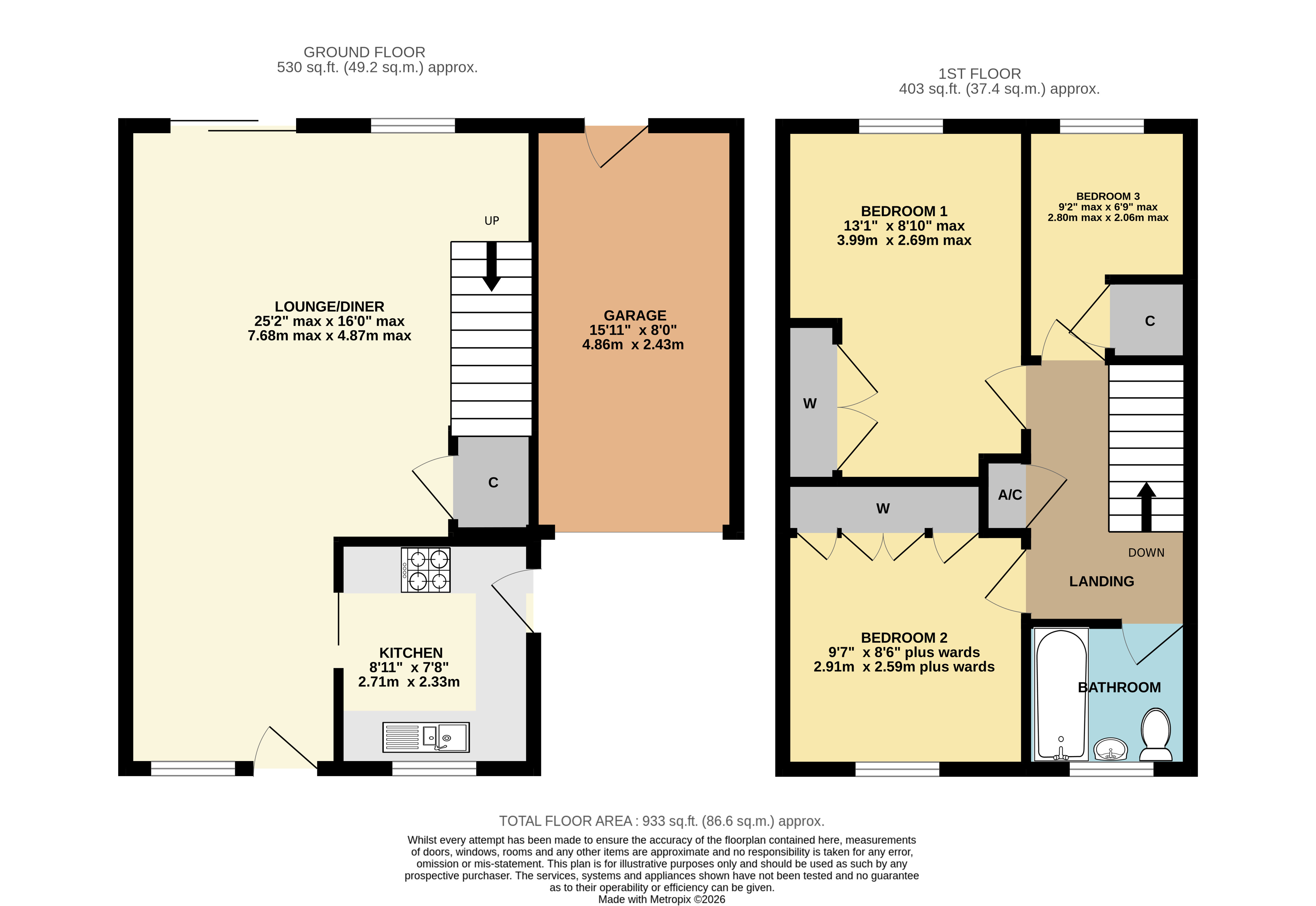 Garage 15'11" x 8' (4.85m x 2.44m).