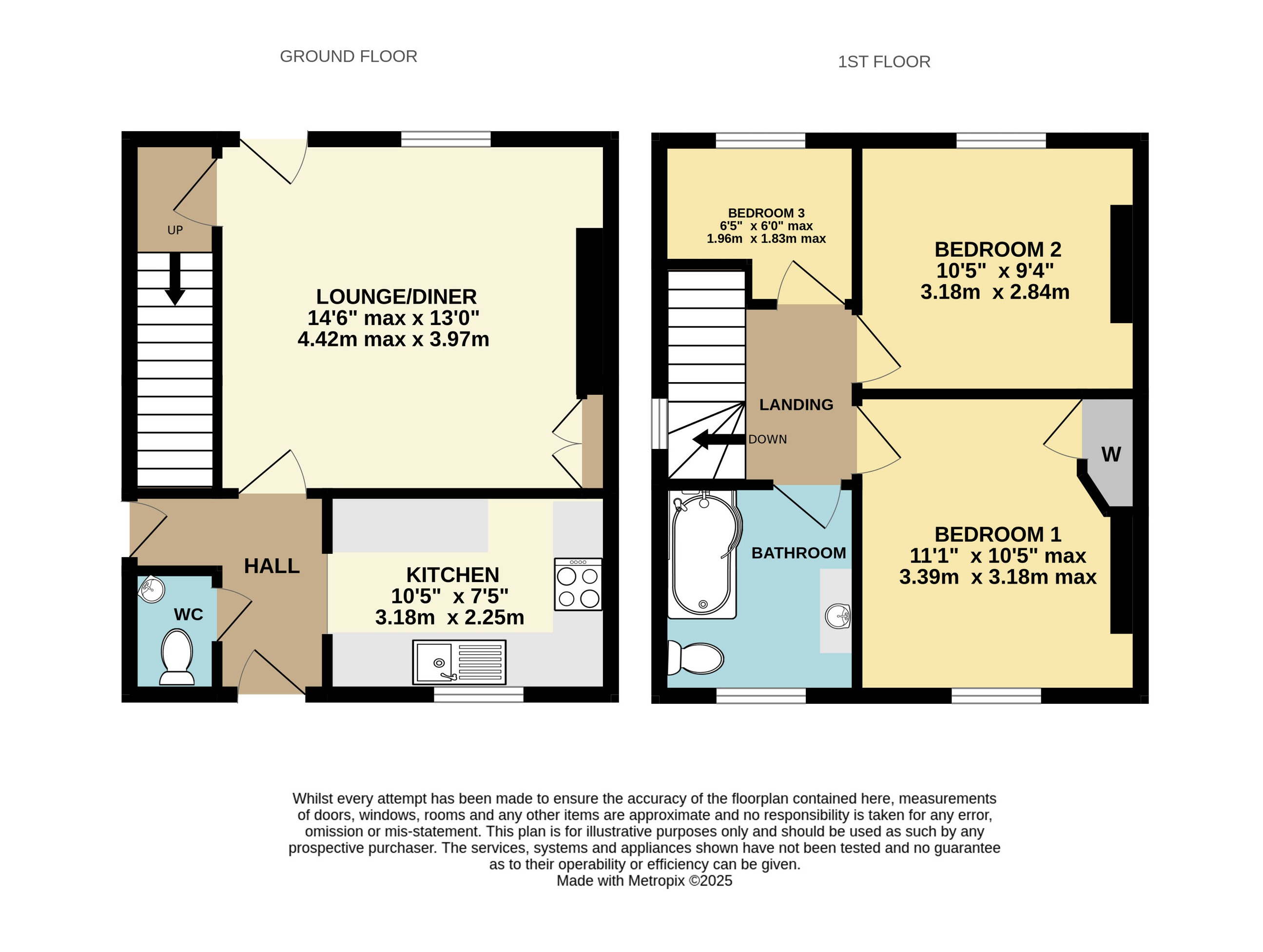 Bedroom 1 11'1" x 10'5" max (3.38m x 3.18m max).