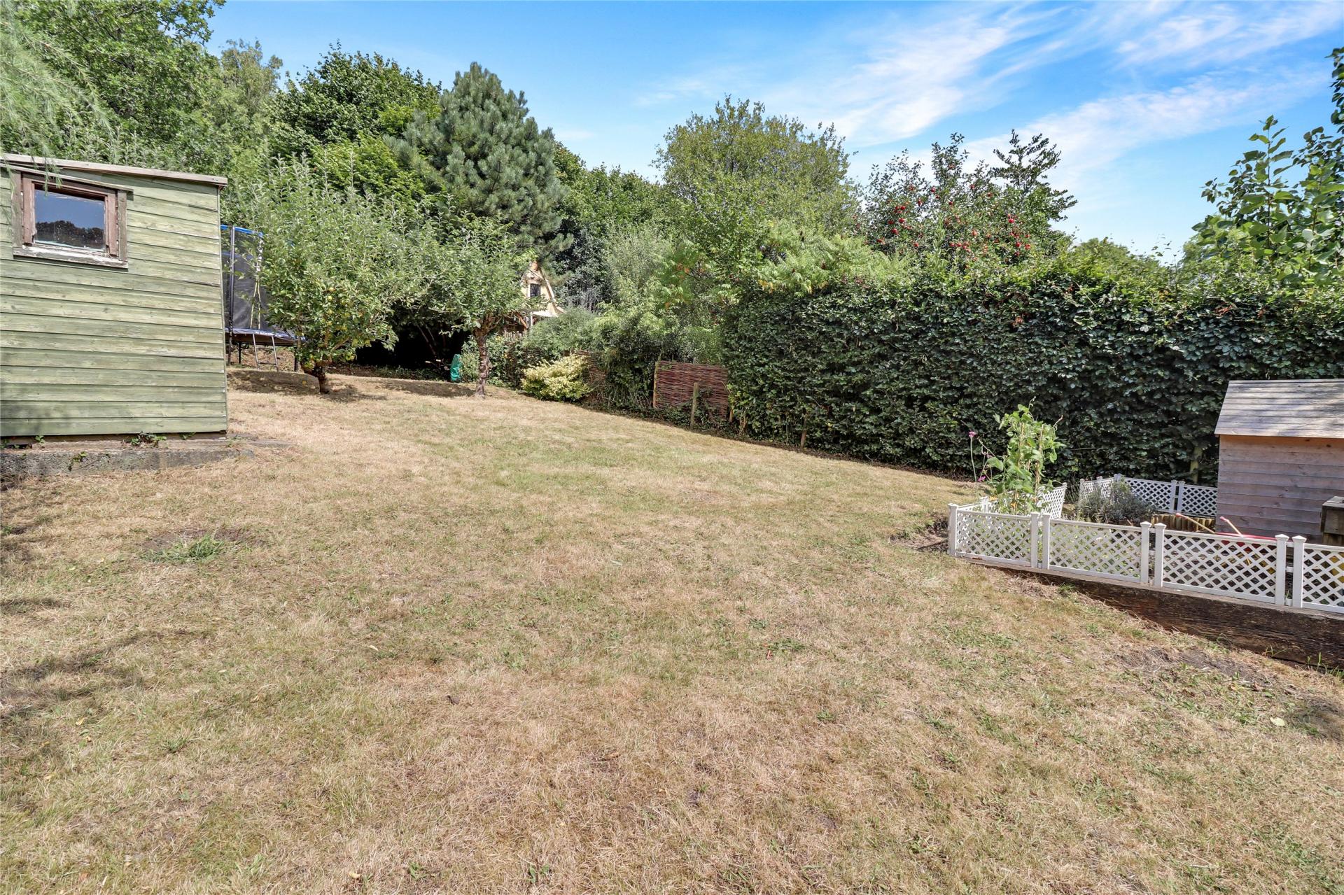 Upstairs, the property offers three bedrooms, including two doubles. The main bedroom features fitted wardrobes, while the third bedroom is a generous single with a built-in cupboard. The family bathroom is fitted with a white three-piece suite including a panelled bath with shower over, pedestal wash hand basin, and low-level WC.
