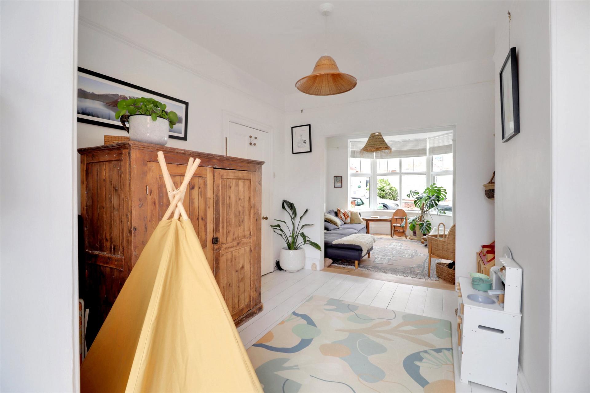 Bursting with character, the home retains original fireplaces and features a light and airy lounge to the front with a log burner, offering direct access to the courtyard garden.