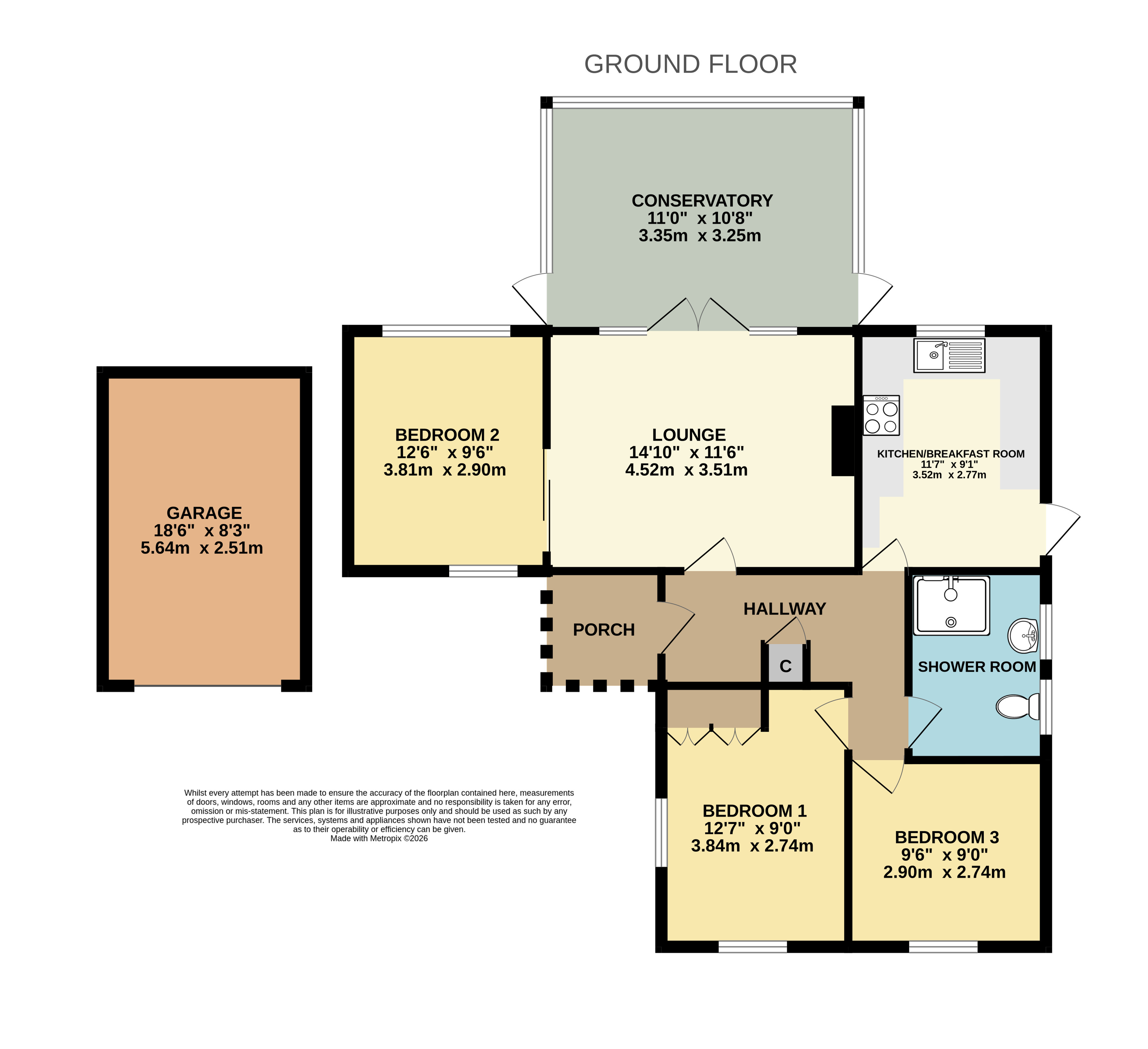 Garage 18'6" x 8'3" (5.64m x 2.51m).