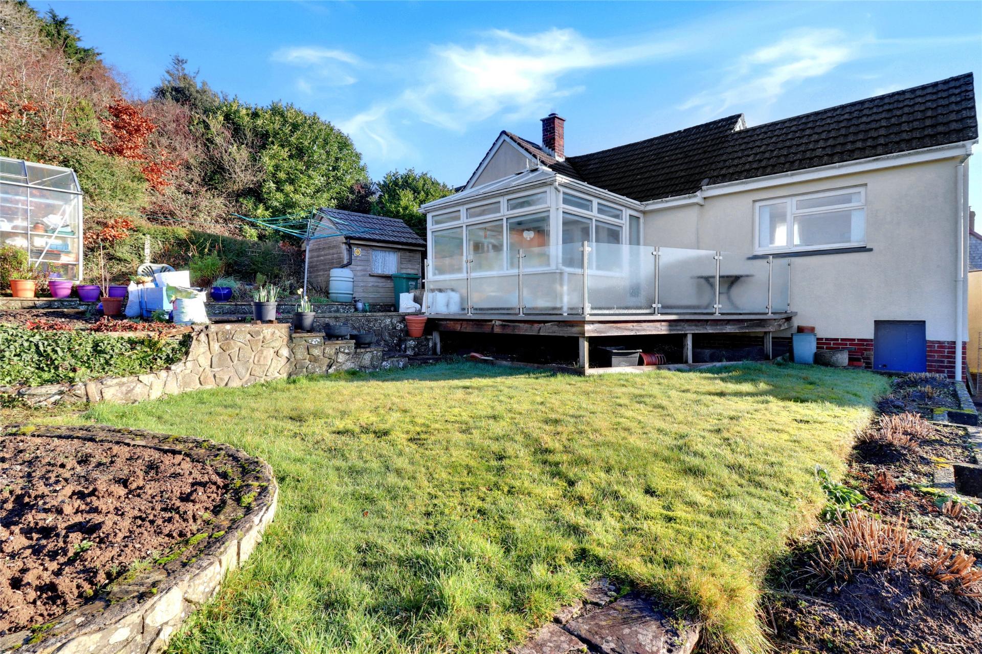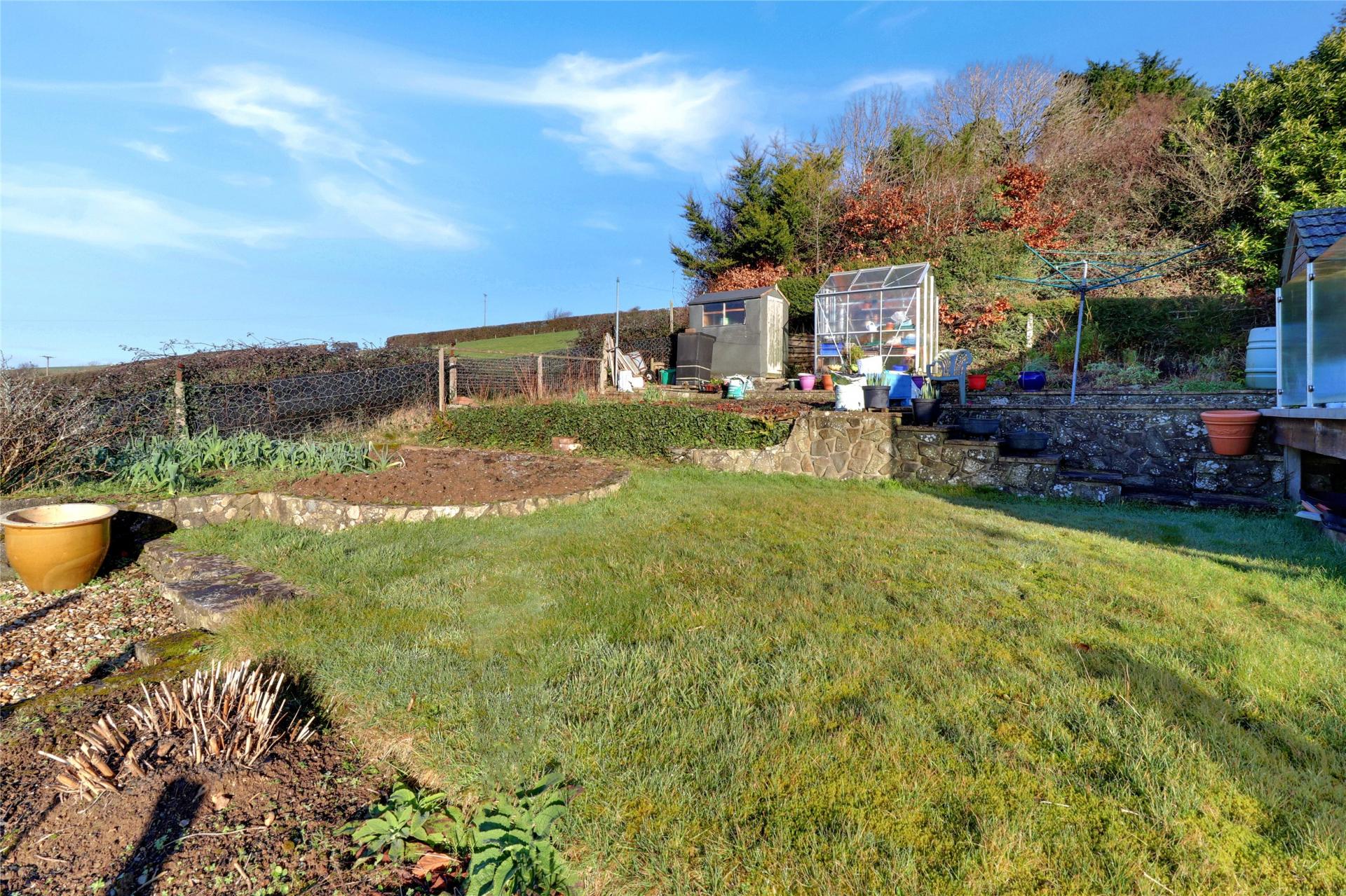 Externally, the property continues to impress. The rear garden is arranged over gentle tiers and has been thoughtfully laid out to make the most of the elevated position and exceptional views. There is a productive vegetable patch, patio areas ideal for outdoor dining, and an attractive decked area wrapping around the conservatory. Side pedestrian access is available on both sides of the bungalow.