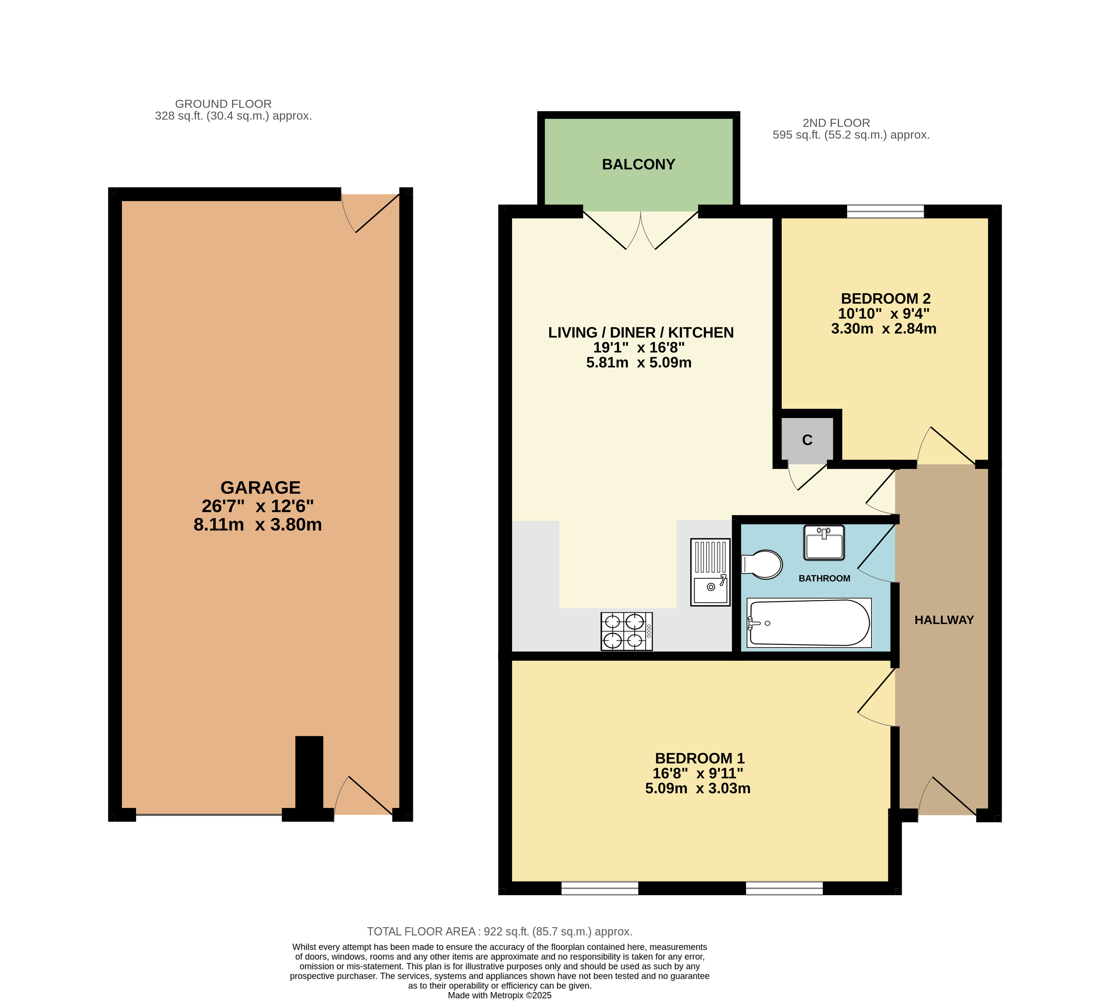 Garage 26'7" x 12'6" (8.1m x 3.8m).