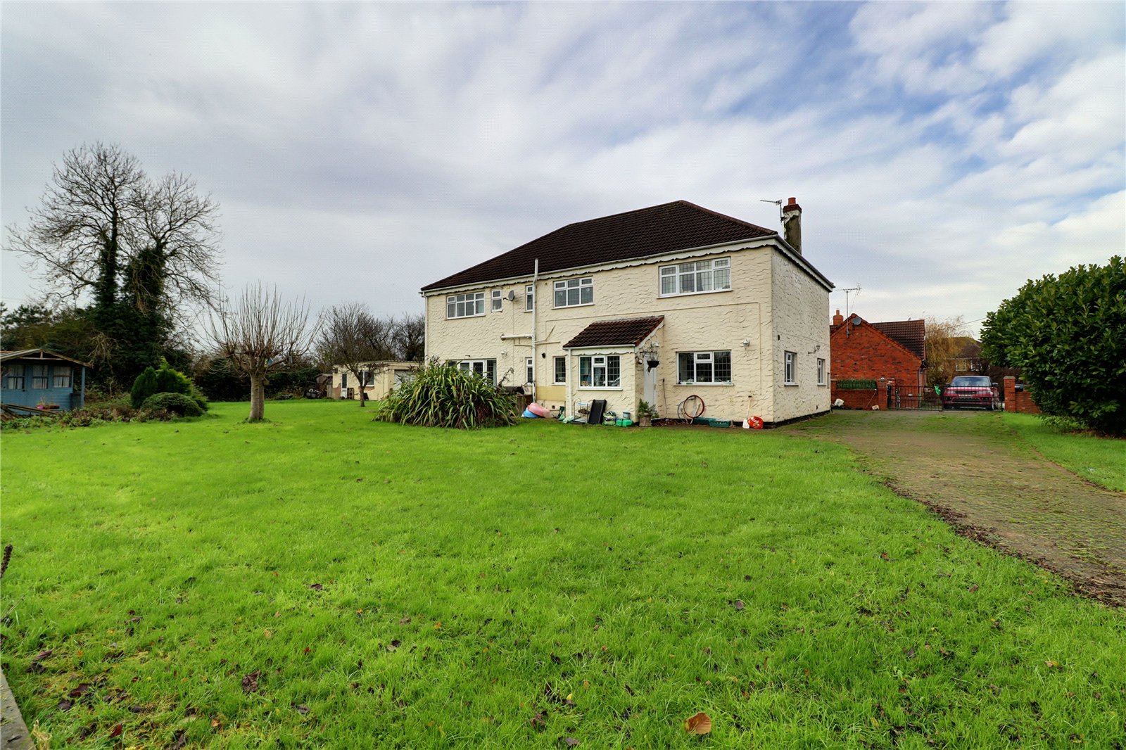 ** CIRCA 3.4 ACRES (STS) ** A charming render finished detached house quietly positioned toward to fringe of the village offering private formal gardens with gated access to a grass laid paddock. The individually designed and well-proportioned accommodation comprises, central reception hallway, spacious main lounge, open plan living/dining kitchen with a matching utility room and cloakroom. The first floor has a central galleried landing, leading to 3 large double bedrooms with a master dressing room and en-suite bathroom, main family bathroom. The surrounding formal gardens come principally lawned with a generous driveway allowing ample parking and access to a fully enclosed paddock. Finished with full double glazing and central heating. A superb opportunity for the equestrian natured buyer with a viewing strongly recommended. View via our Barton office.