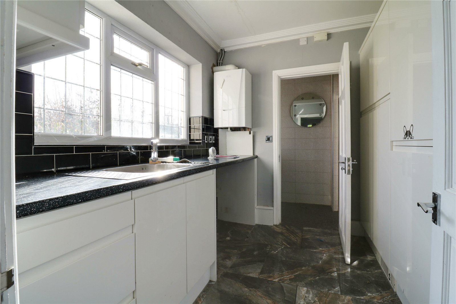 Utility Room 8'10" x 7'10" (2.7m x 2.4m). With rear uPVC double glazed and leaded window, matching furniture to the kitchen, patterned worktop incorporating a stainless steel sink unit, plumbing and space for appliances, wall mounted gas central heating boiler, ceramic tiled flooring and doors to;