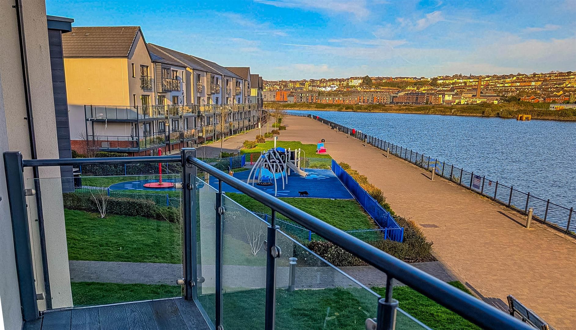 A true highlight of the home is the breathtaking direct view over Barry Docks, enjoyed from two spacious balconies. These outdoor areas are perfect for relaxing with a coffee or simply taking in the serene waterfront scenery.