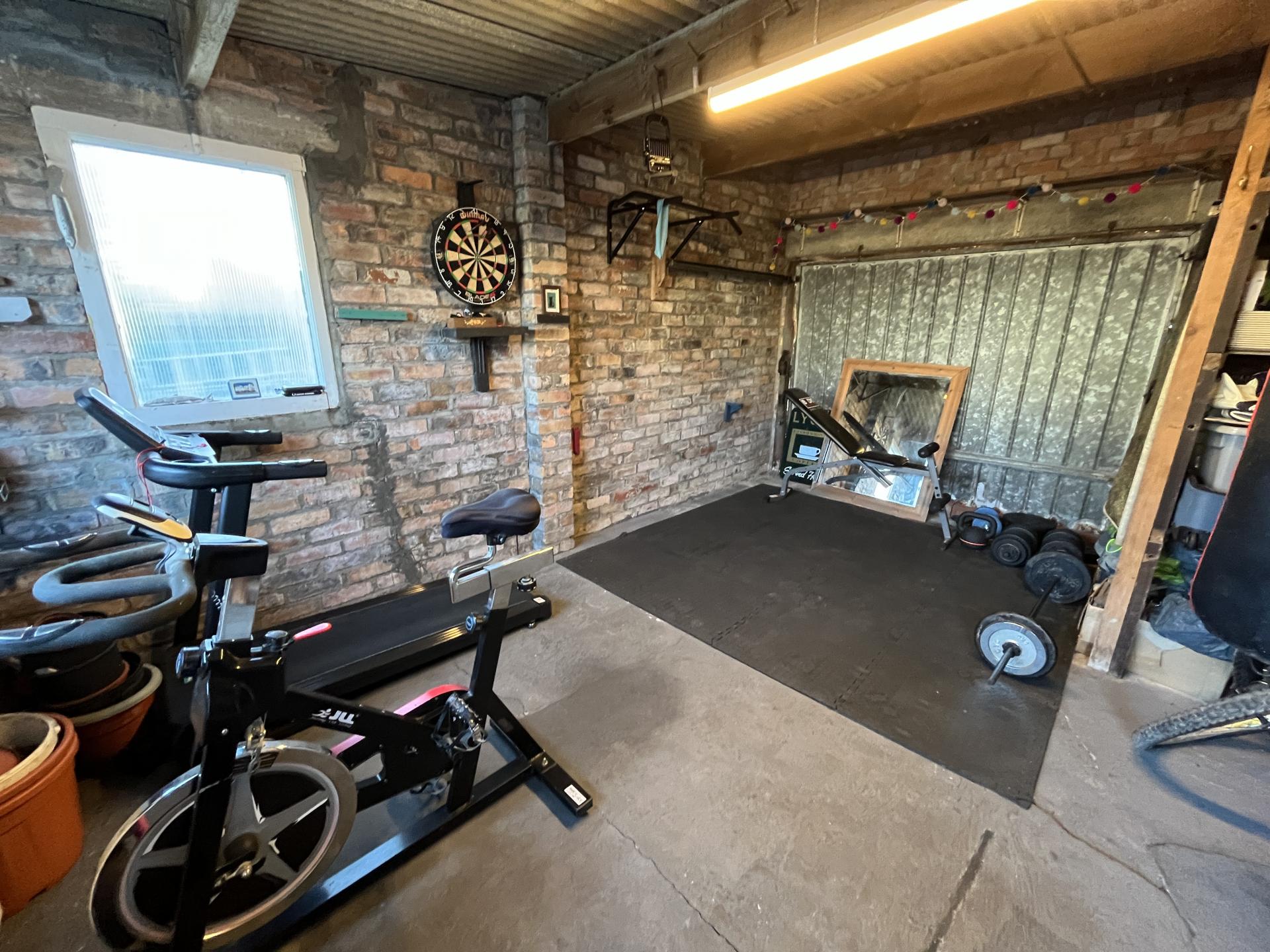 - Garage with power, lighting, and rear garden outlook.