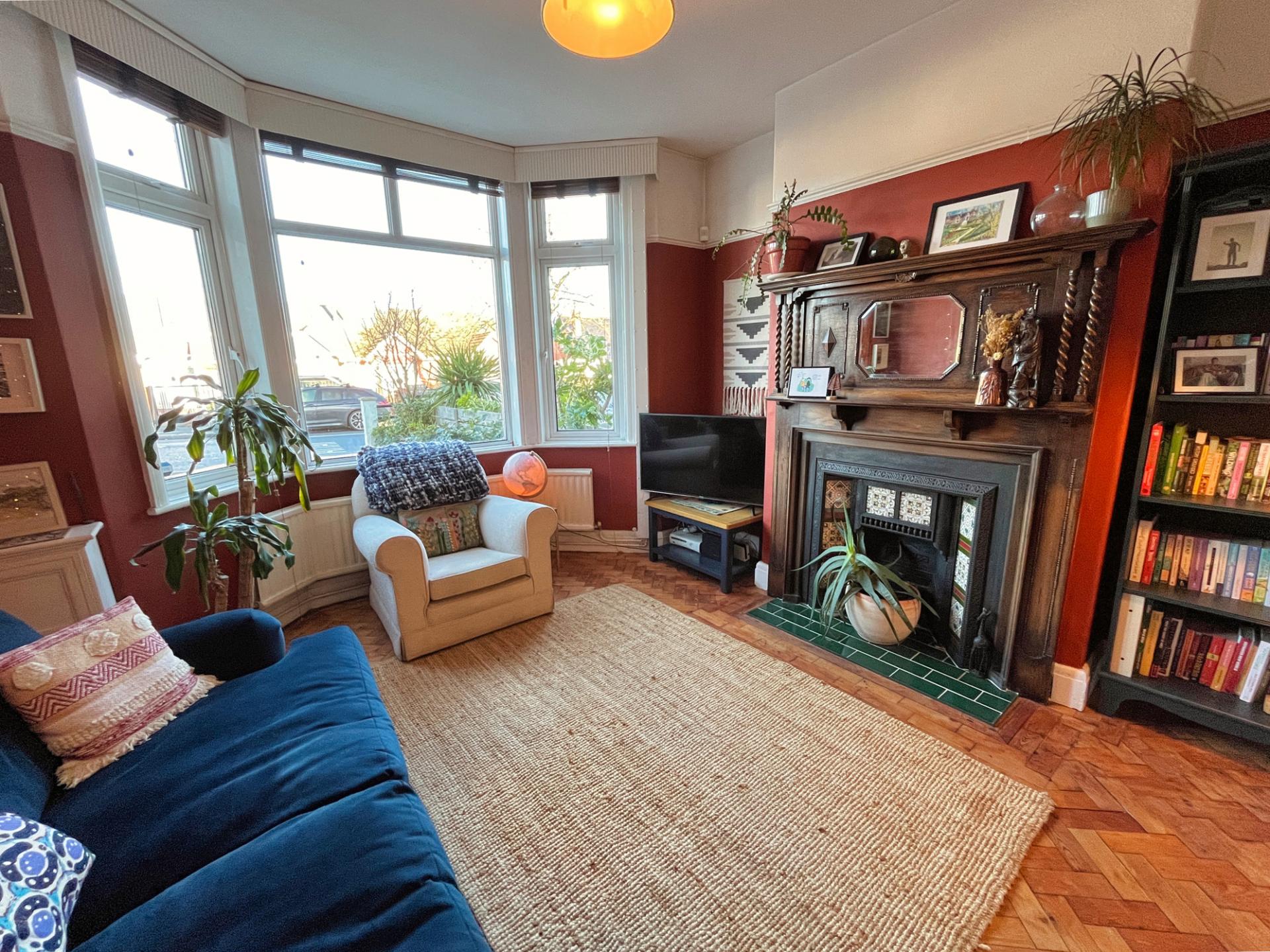 - Spacious lounge with parquet flooring and bay-fronted window.