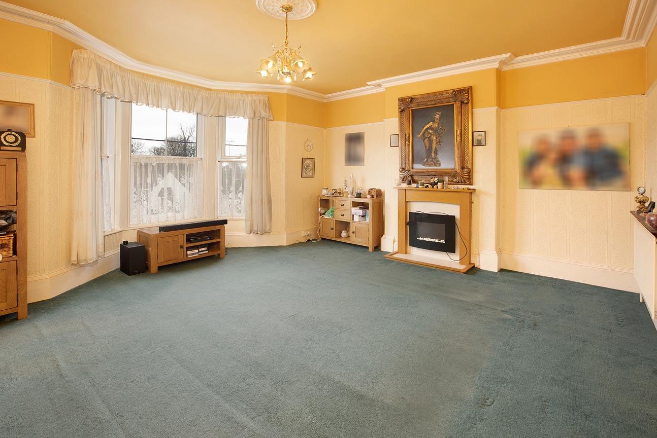 FAMILY ROOM/BEDROOM: Versatile room with uPVC double-glazed sash window to the front. Feature fireplace with electric fire, radiator, power points and television aerial connection. Coved ceiling and picture rail.