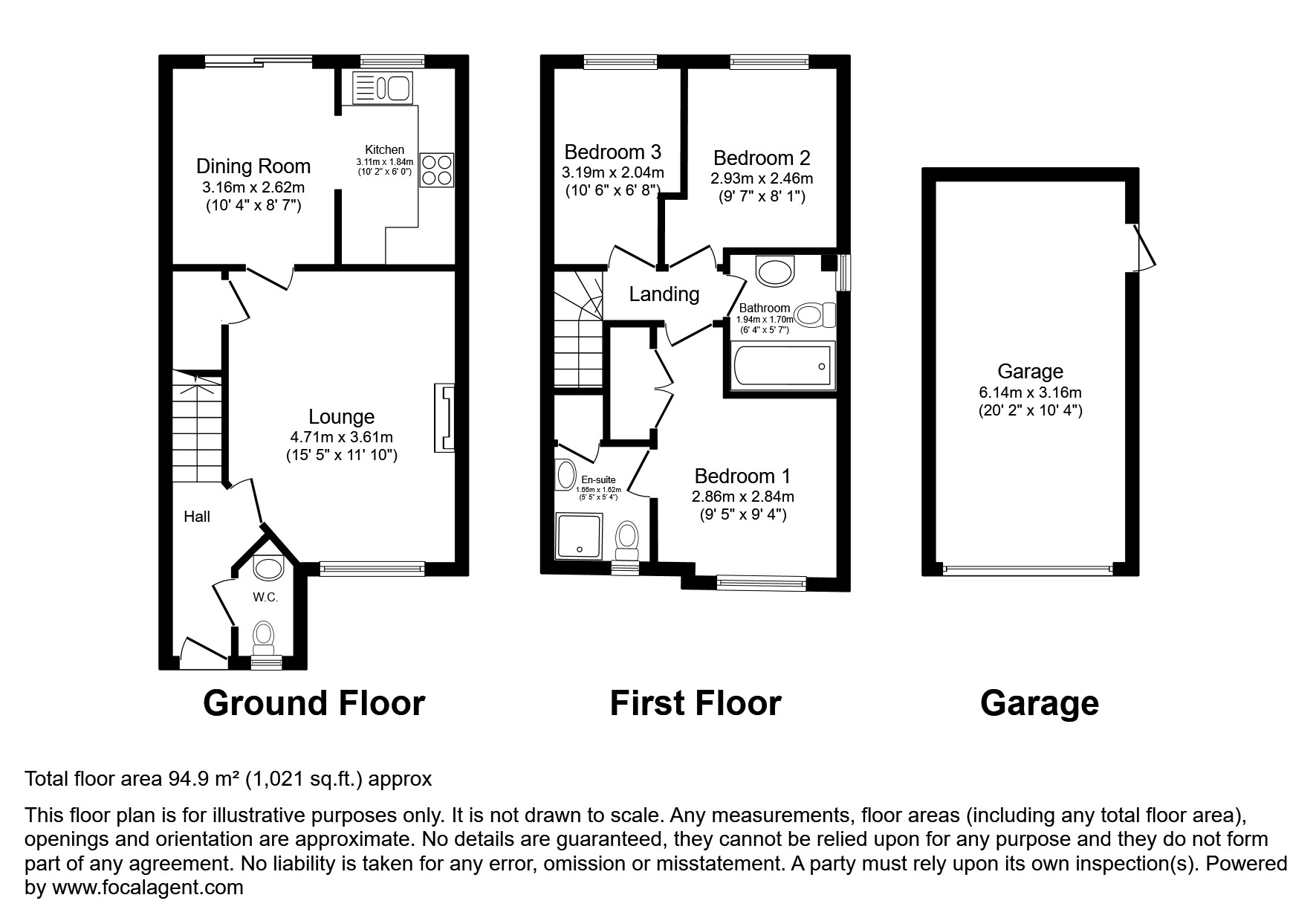 The house comprises, entrance hallway, downstairs WC, living room, dining room, kitchen with patio doors. Upstairs, you'll find one large double bedroom & two generous small doubles, with the main bedroom enjoying the luxury of an en-suite shower room, alongside a family bathroom. Additional amenities include gas central heating, double glazing, and an enclosed private rear garden.