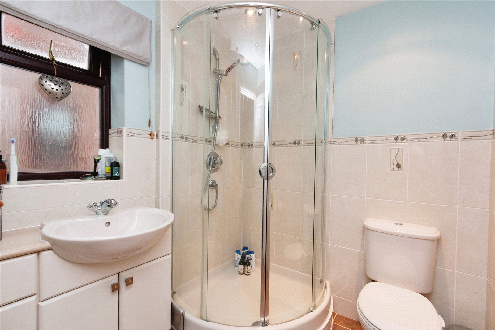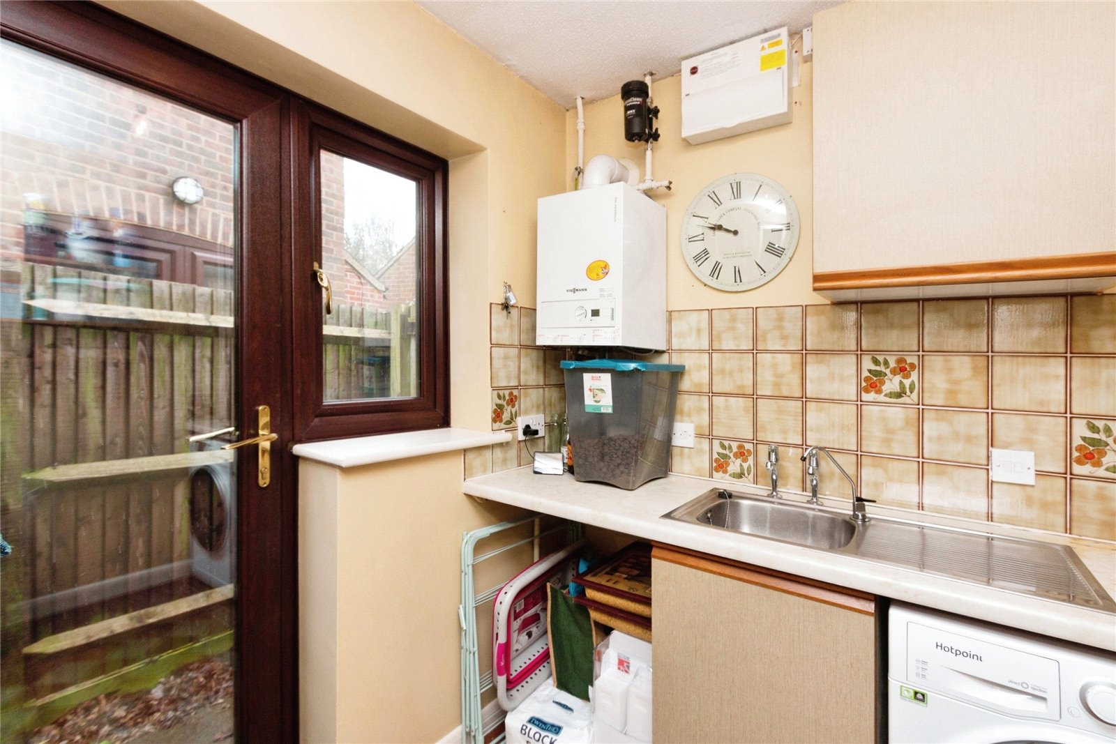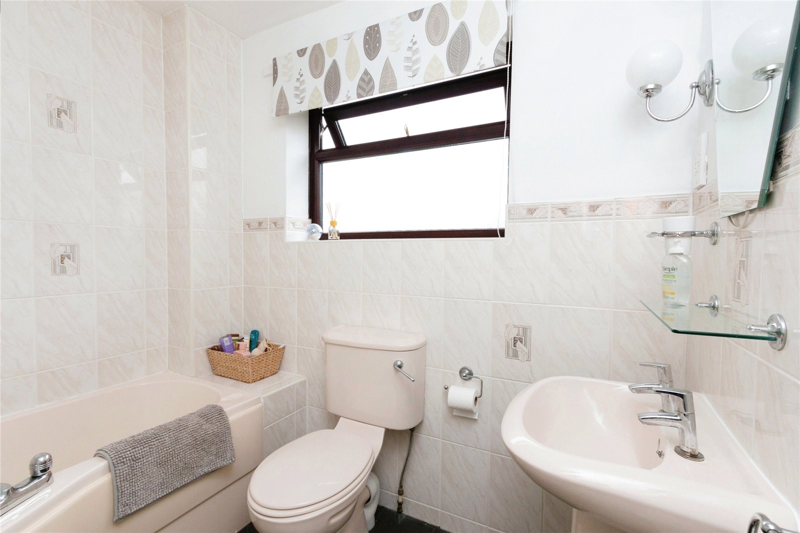 As you step inside, you are greeted by a convenient porch, perfect for hanging coats and storing shoes. The hallway provides central access to an extended dining room, featuring bay windows overlooking the garden. Adjacent to the dining room is a bright and airy living room, with a gas fire and sliding doors to the garden patio. The kitchen/breakfast room, complete with a separate utility room, facilities space for white goods and further cupboard space. Additionally, there is a downstairs w/c with a wash hand basin and toilet. A useful understairs cupboard offers extra storage space. Notably, the property benefits from a recently installed water softener system.