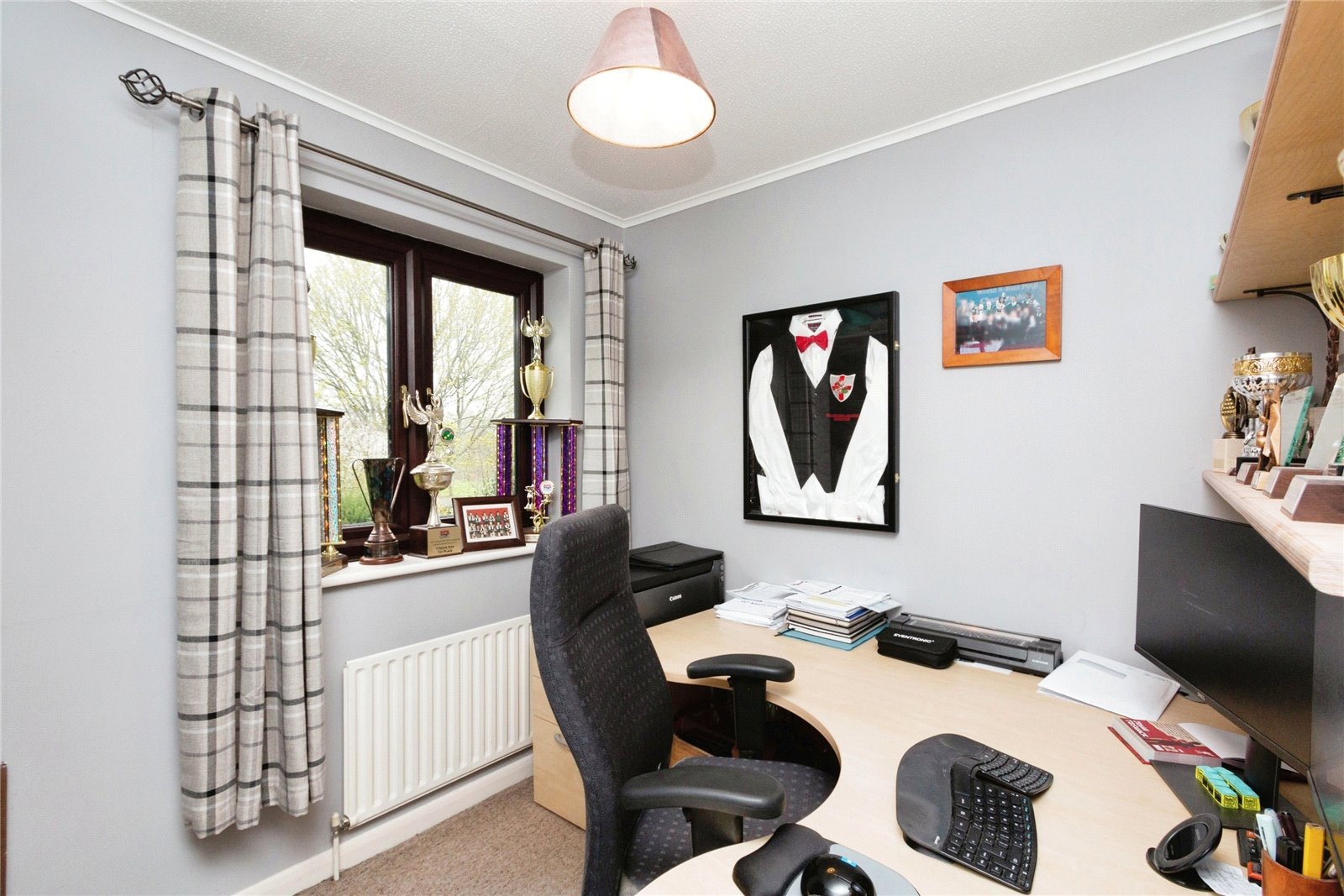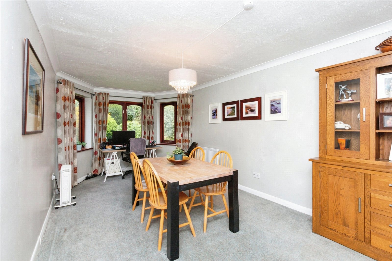 The secluded rear garden is predominantly laid to lawn and surrounded by mature trees and shrubs. Access to the garden can be gained through the side gate or utility room. At the front of the property, there is an attractive area of lawn, flower beds, and shrubs, with a path leading to the front porch.