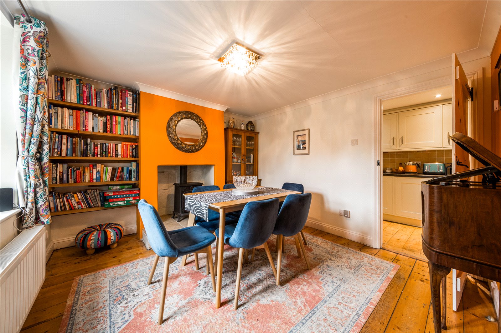 A charming period home, displaying a depth of character blended with contemporary decor in a sought after village location. Internally the property features a spacious dining room fitted with a log burner, which provides access to the full width kitchen which connects to the main living space - a breath-taking room which exposed stone and patio doors out to the garden creating a room filled with natural light. The first floor landing features a vaulted ceiling with a Velux, allowing natural light to fill the space - from the landing access to both bedrooms and the study can be found. Both bedrooms offer spacious dimensions and comfortably take double beds, and the master bedroom features a stunning feature wall consisting of exposed stone. The study/WFH space is also accessed via the landing and features a nautical style window which is a delicate addition to the space. Additional benefits include off road parking and a garage with power & lighting.
