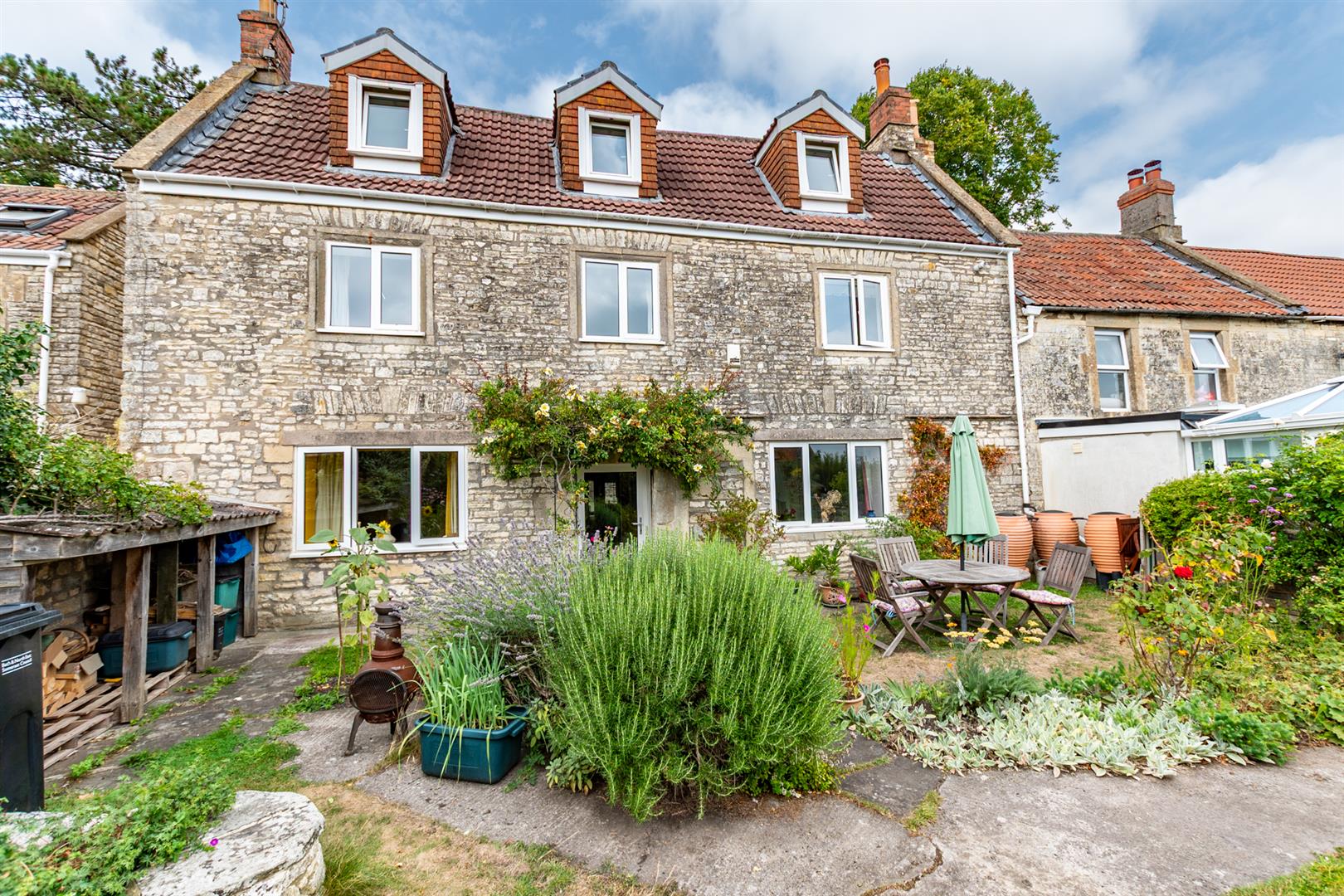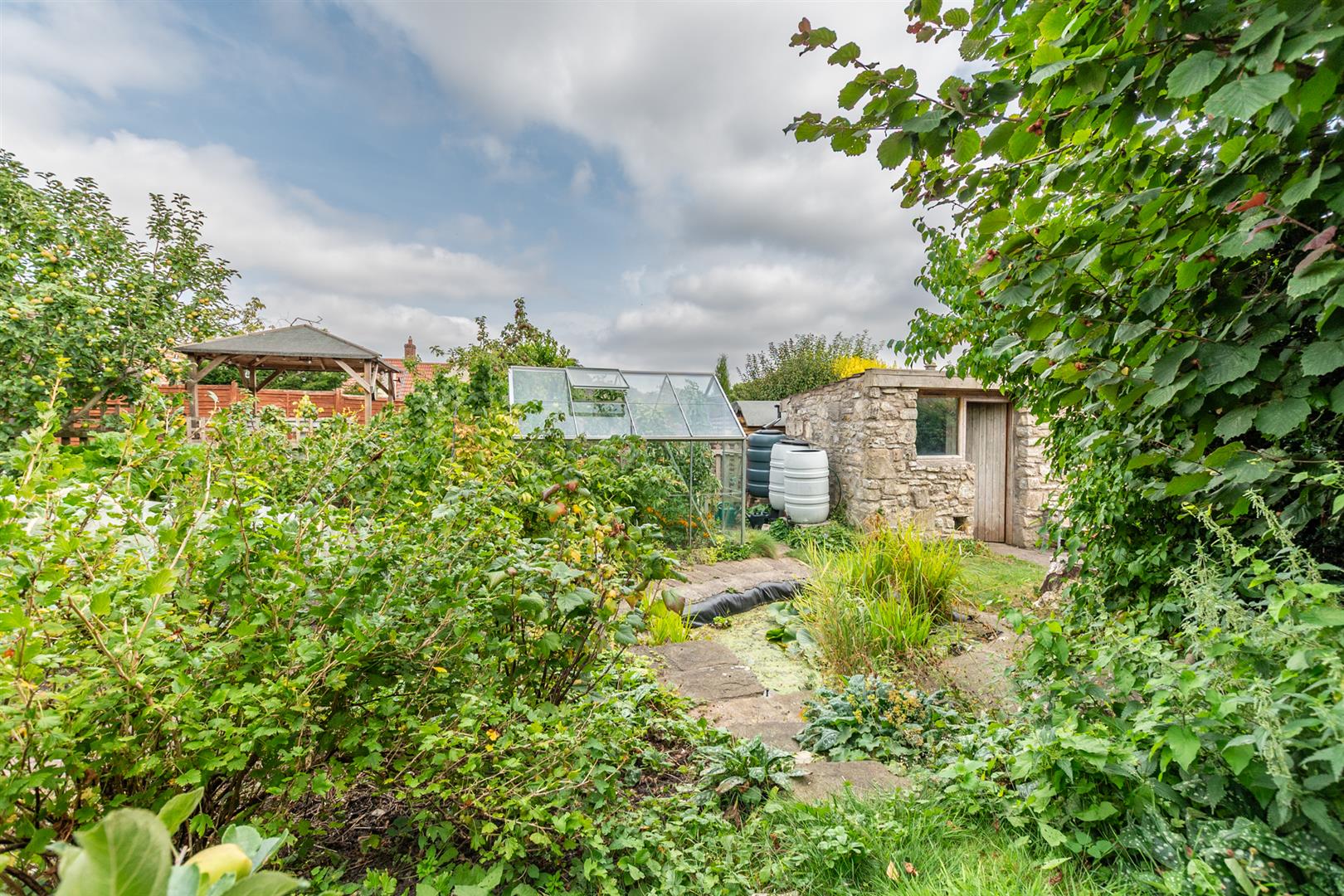 - Traditional English country southerly facing garden with useful garden stores
