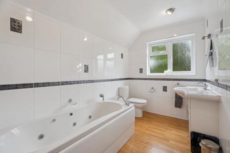 Upstairs, four well-proportioned bedrooms offer comfort and flexibility. The master suite is a peaceful retreat, complete with fitted wardrobes and a luxurious ensuite with bath and separate shower. Two further doubles provide plenty of storage, while the single bedroom is perfectly suited as a child’s room, study, or nursery. A stylish family bathroom completes the floor, while the boarded and carpeted loft—with lighting and storage—offers exciting potential for future conversion.