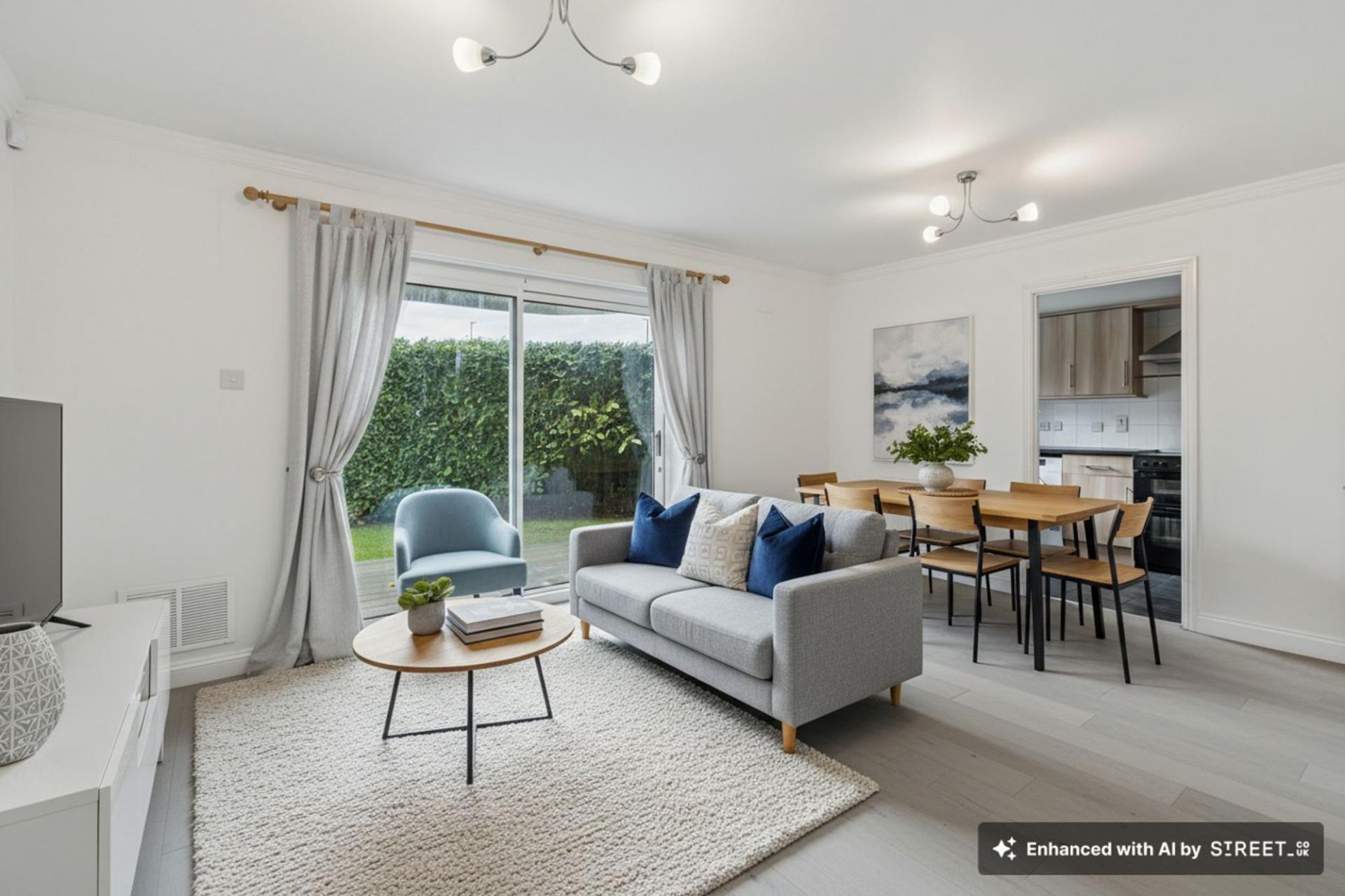 Spacious ground floor 2-bed apartment with en-suite main bedroom, open-plan lounge/kitchen/dining area, French doors to...