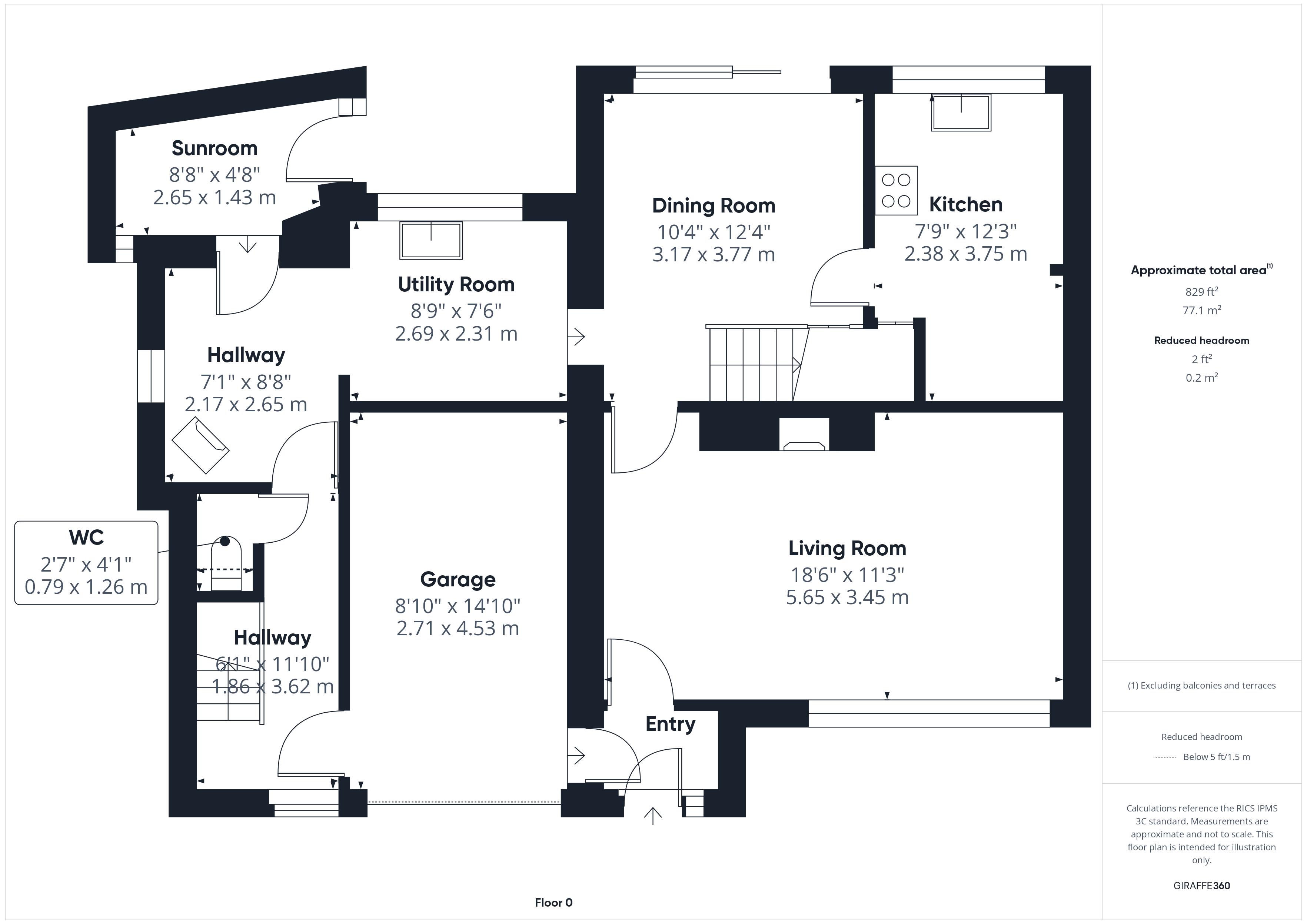 With access to the first hallway, WC, integral garage and upstairs. Central heated radiator.