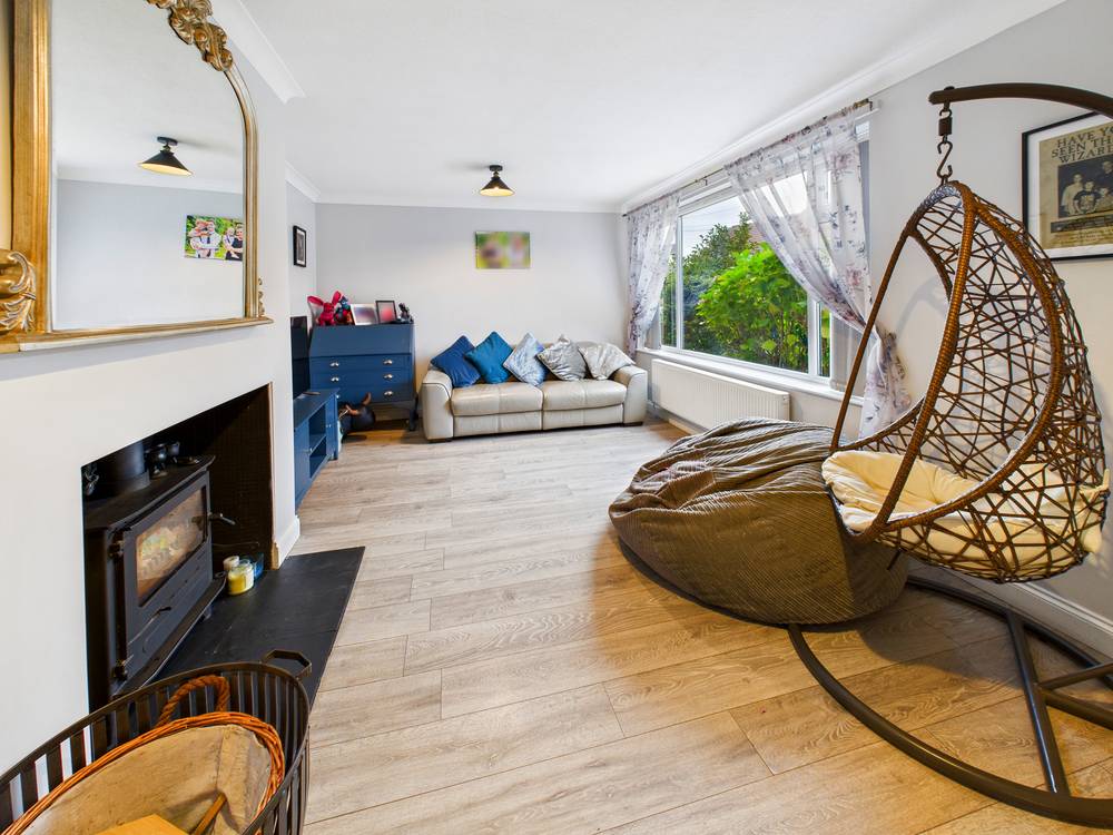 UPVC window looking to the front of the property. Wood effect flooring. Log burner with marble hearth. Central heated radiator.