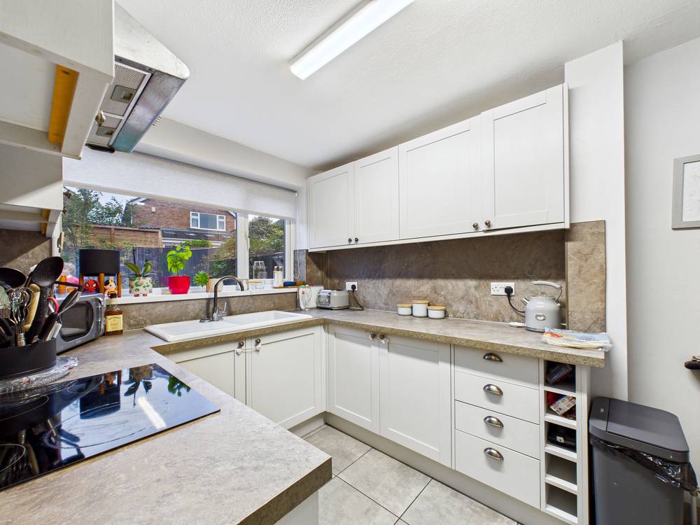 Tinted UPVC windows looking onto the garden. Tiled flooring. Integrated appliances such as an electric hob, oven and hood extractor over. Built in storage/pantry cupboard. Stainless steel mixer tap, sin and drainer. Range of high and low level base units. Central heated radiator.