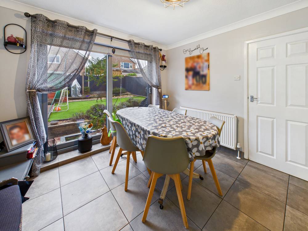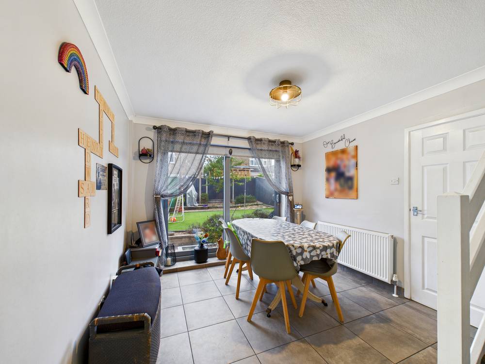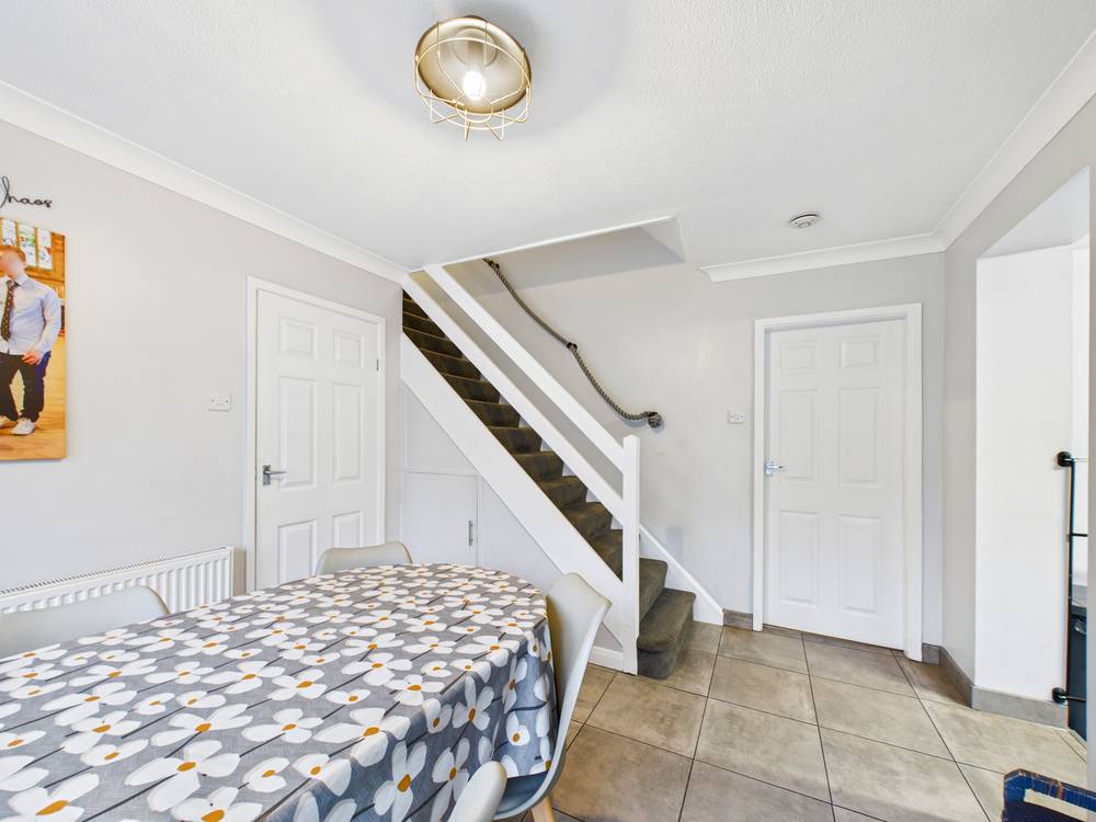 The spacious dining room gives you access to the kitchen, utility room and the living room. Tinted UPVC patio doors looking into the garden for privacy. Tiled flooring. Central heated radiator. Staircase giving access to the second floor.