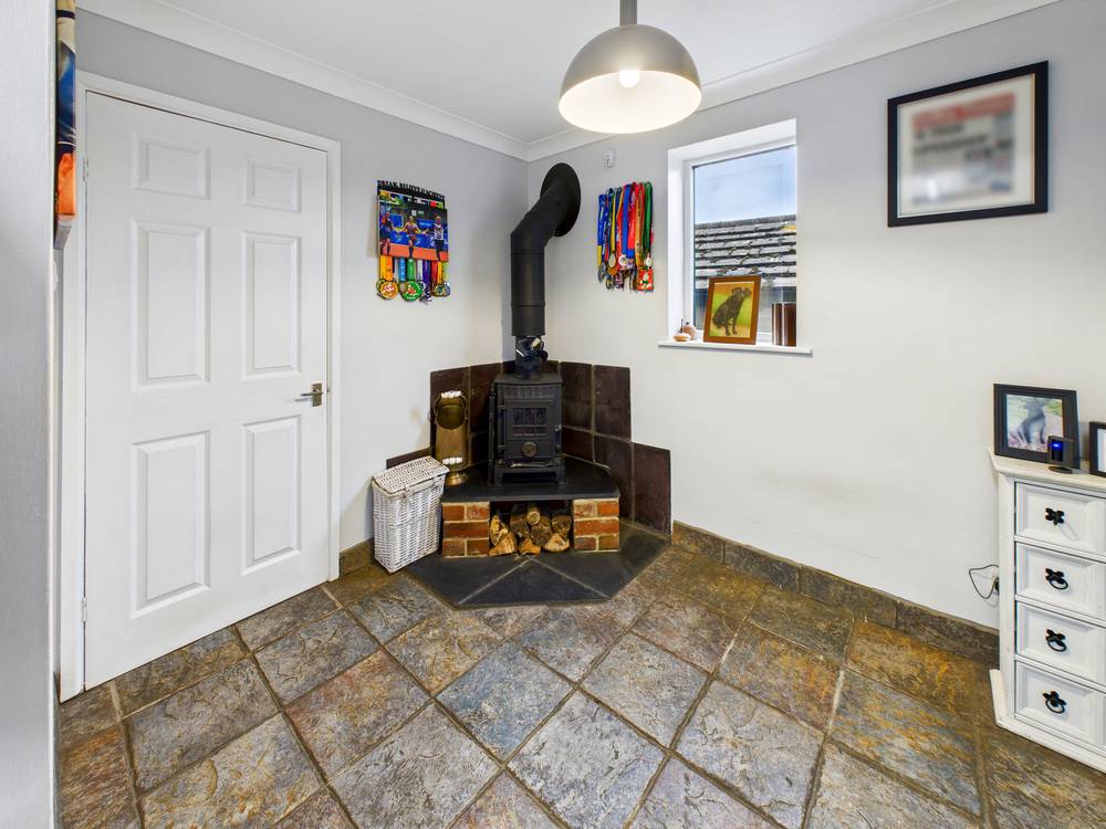 Outdoor access via the sunroom. Access to second hallway. Feature log burner to the corner of the room. Tiled flooring.
