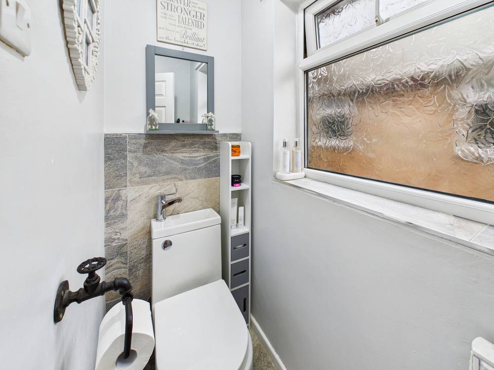 Central heated radiator. UPVC glazed glass looking to the side of the property. Stainless steel mixer tap and toilet.